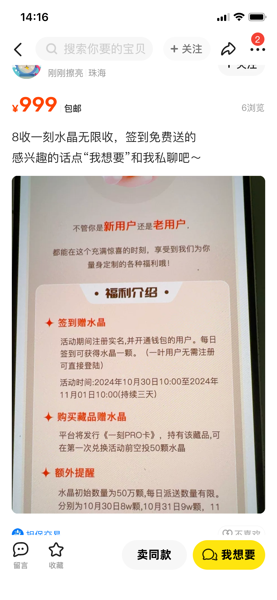 先去注册实名认证和开通钱包2元,今天下午三点签到一下得一个“水晶”、每天下午三点签到,一个水晶8元,一共三天签到可以得24元-2,可以得猪脚饭,咸鱼有人收,很多人收,