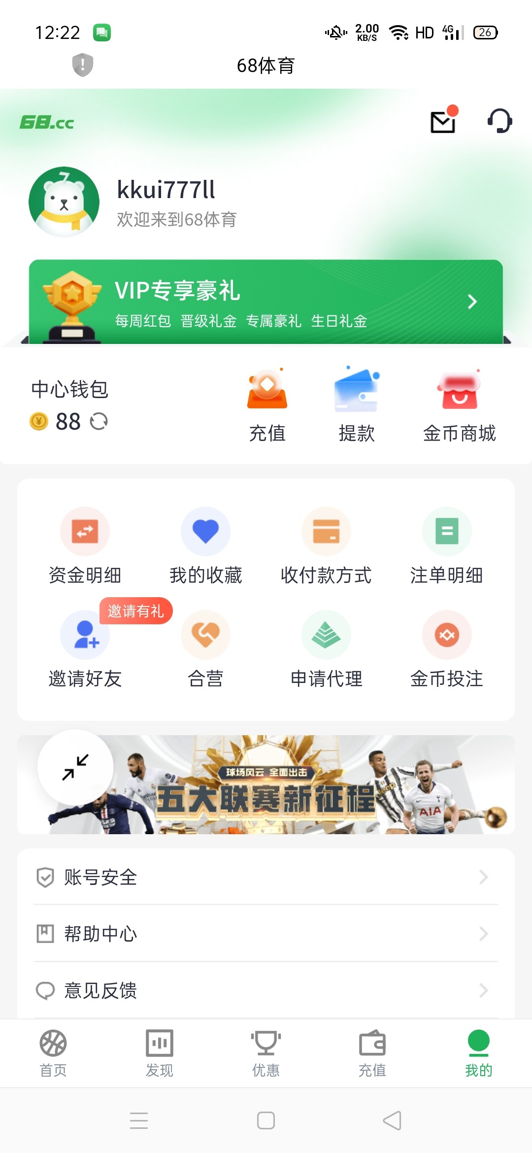 两个号都送过88,第一个提款叫充了200提现秒到了,第二个号打到三百没敢充了,怕说同名多账号
