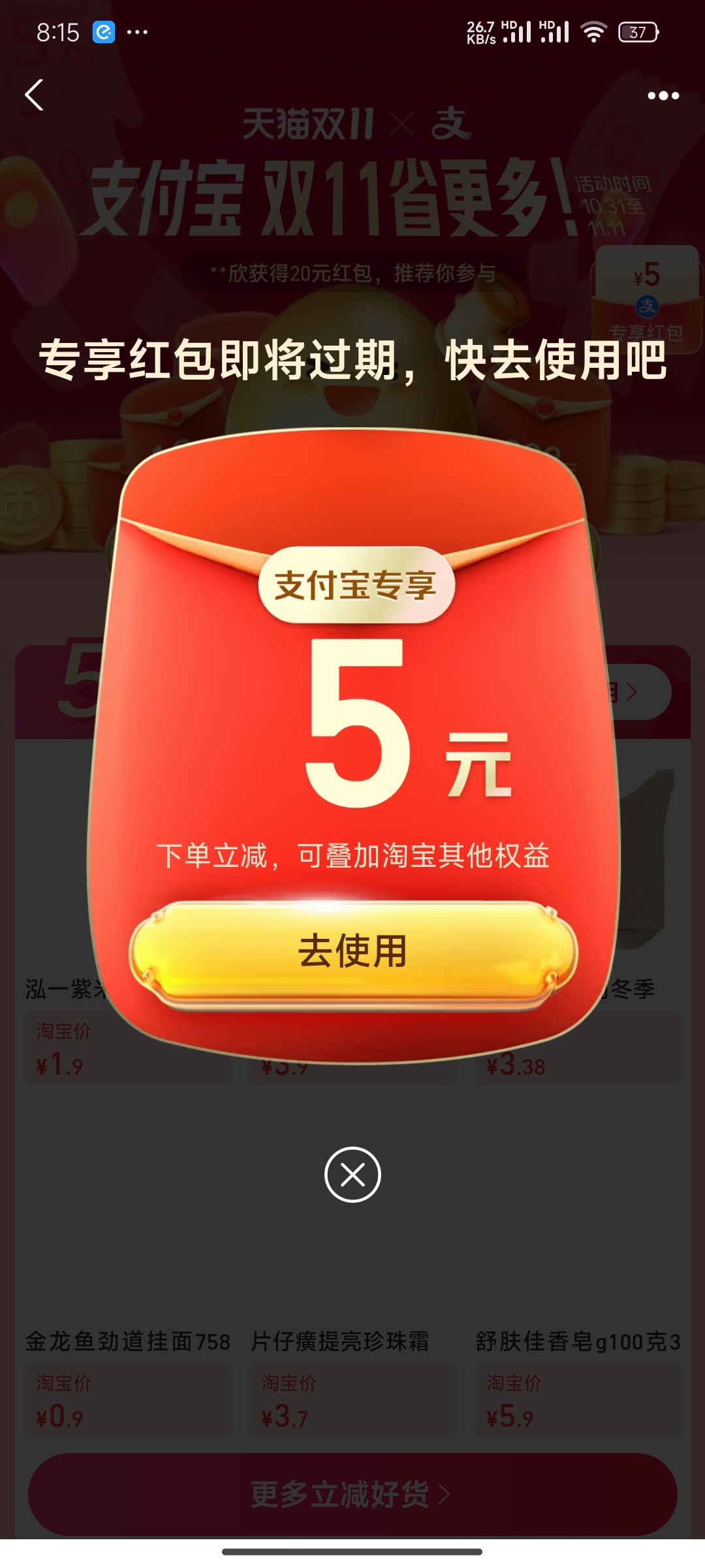 为啥我用不了啊,有个20的卷,付款的时候都没显示抵扣