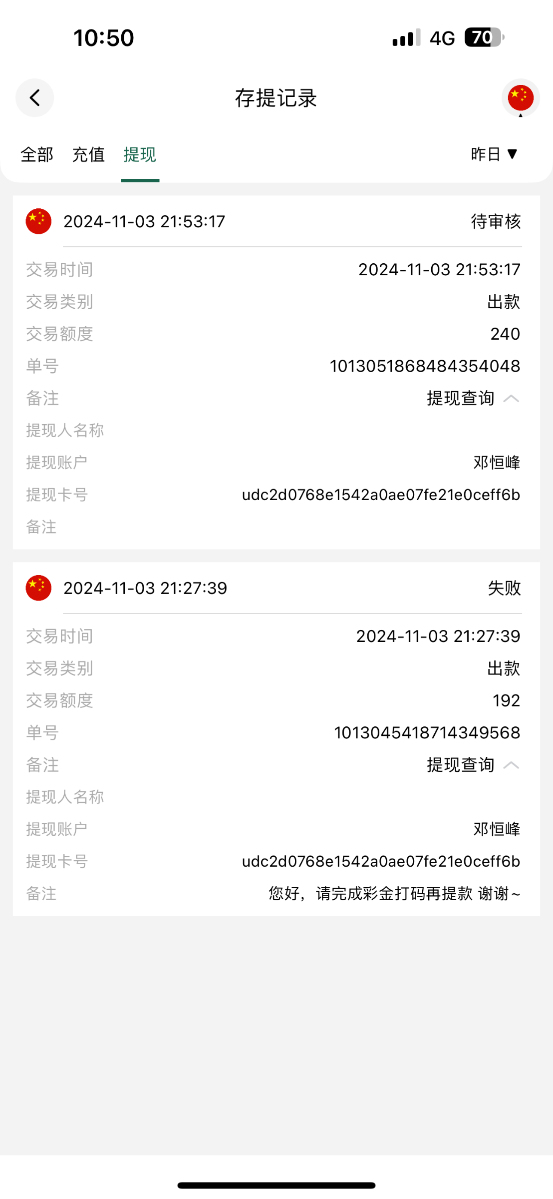 a1971395693 ▶ 孤狼 我也提了100审核中 2024-11-14