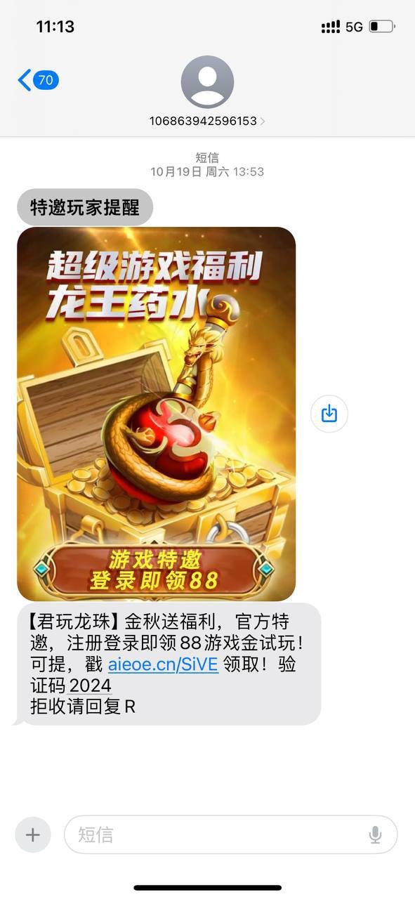 我也有短信领到了,嘛2进一次免费10次空转艹它妈