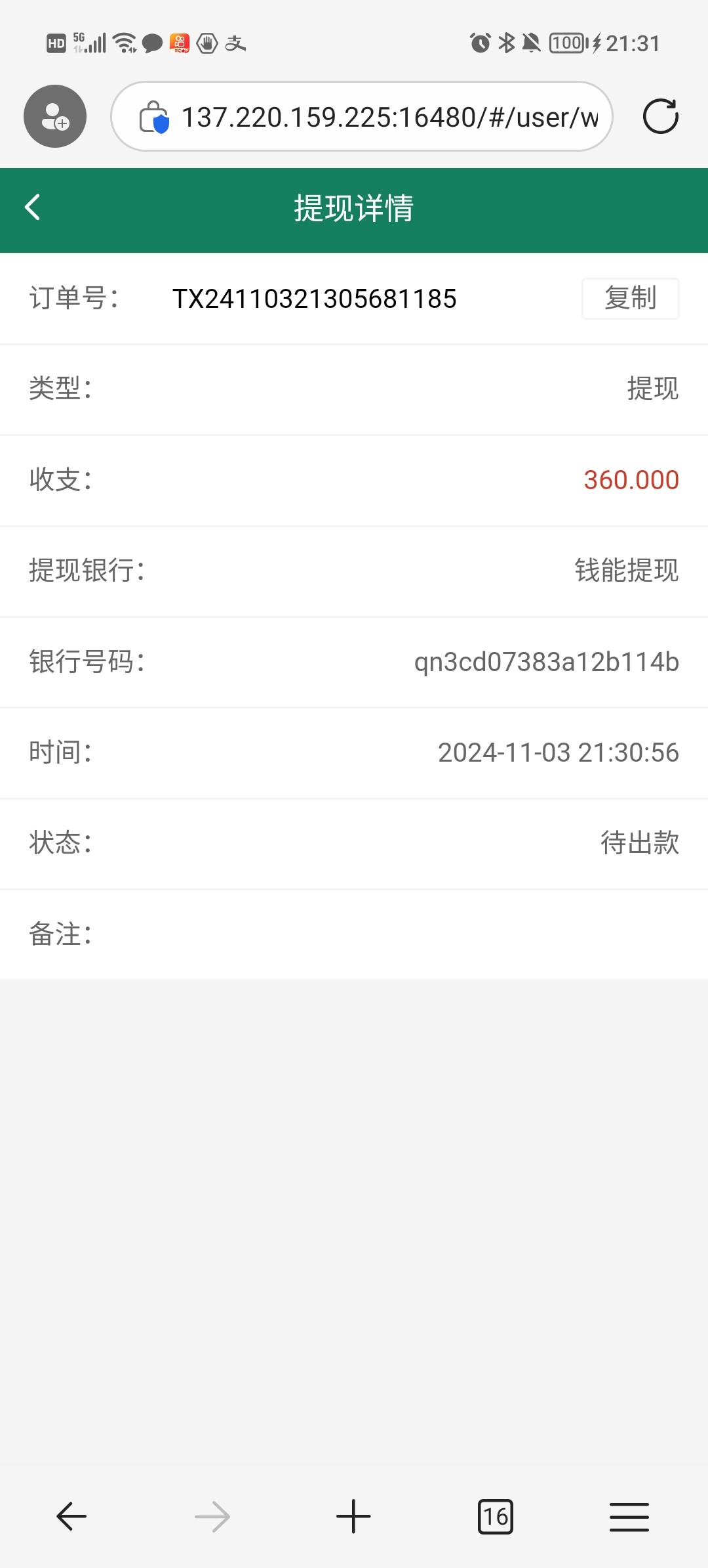 出款情况:自测(禁止充值)