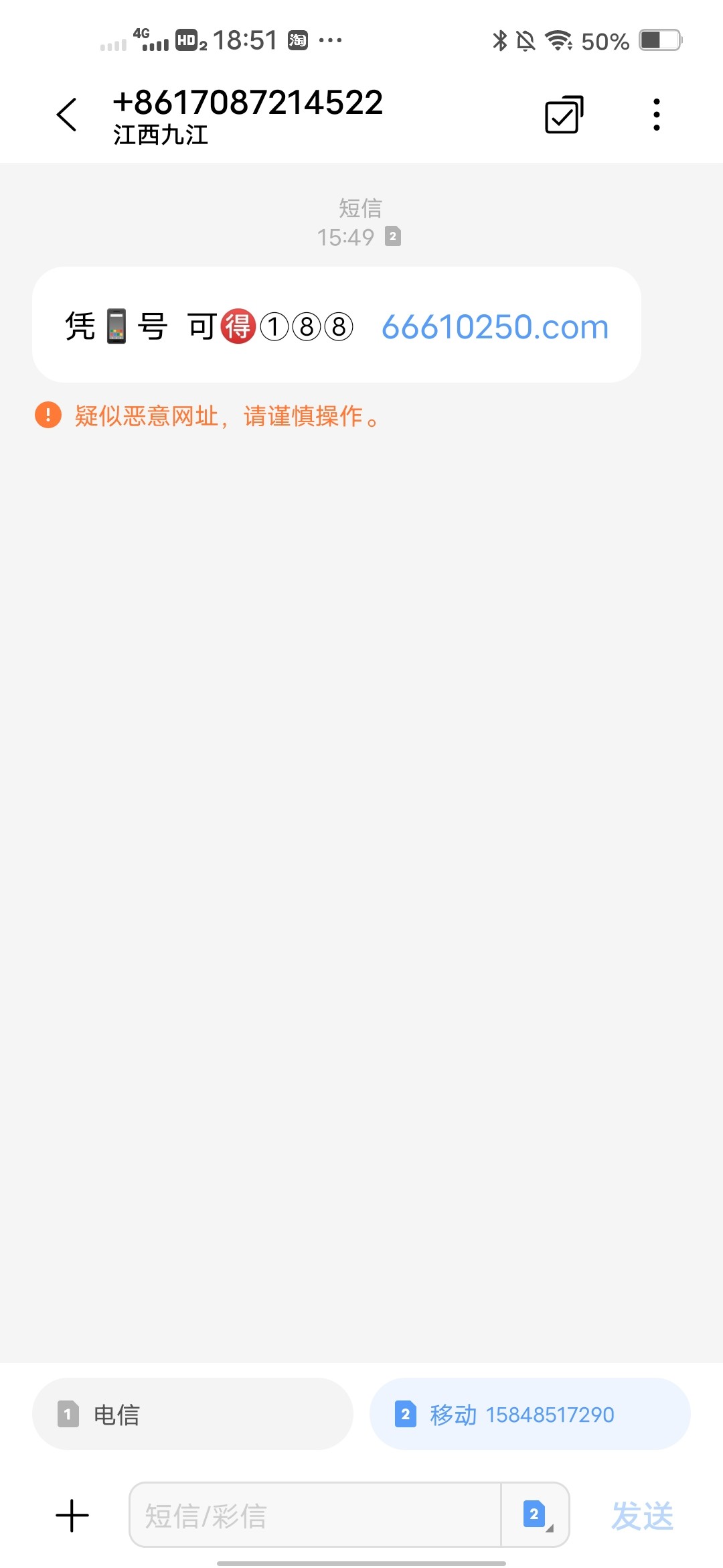 我多账号领了两次了 短信地址 66610250.com