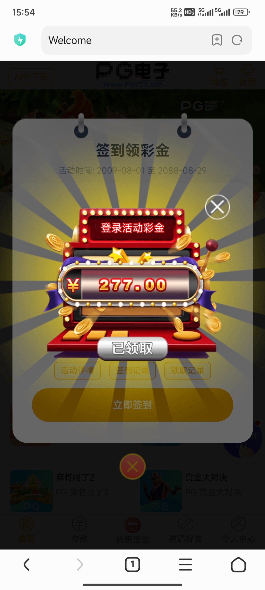 之前充值100首存没打出来,后面签到彩金出150,第二次签到彩金打出来让我充值100打流水,我直接免提直充打死了,第三次没充值签到彩金出了422