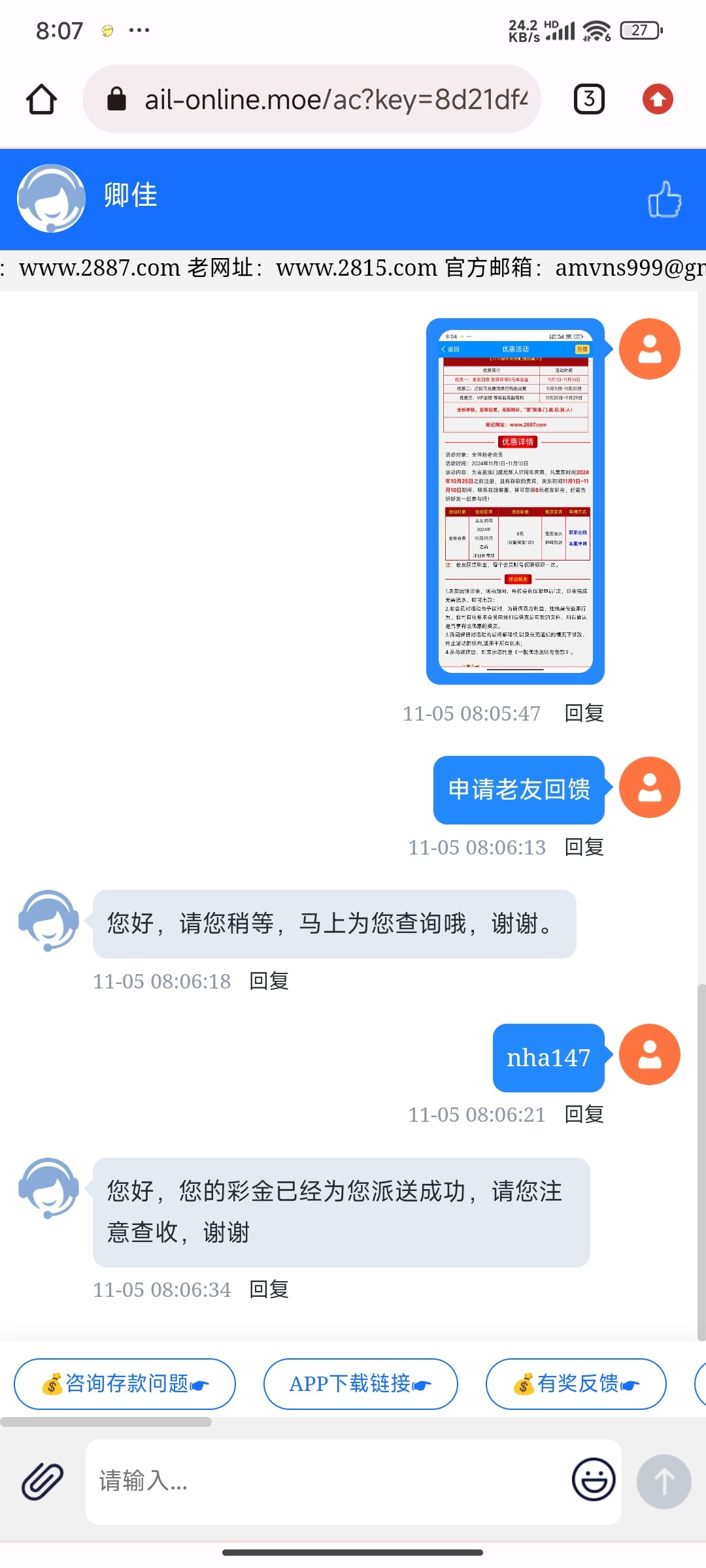 老用户回馈,我没充过的也送了。网址2887.com
