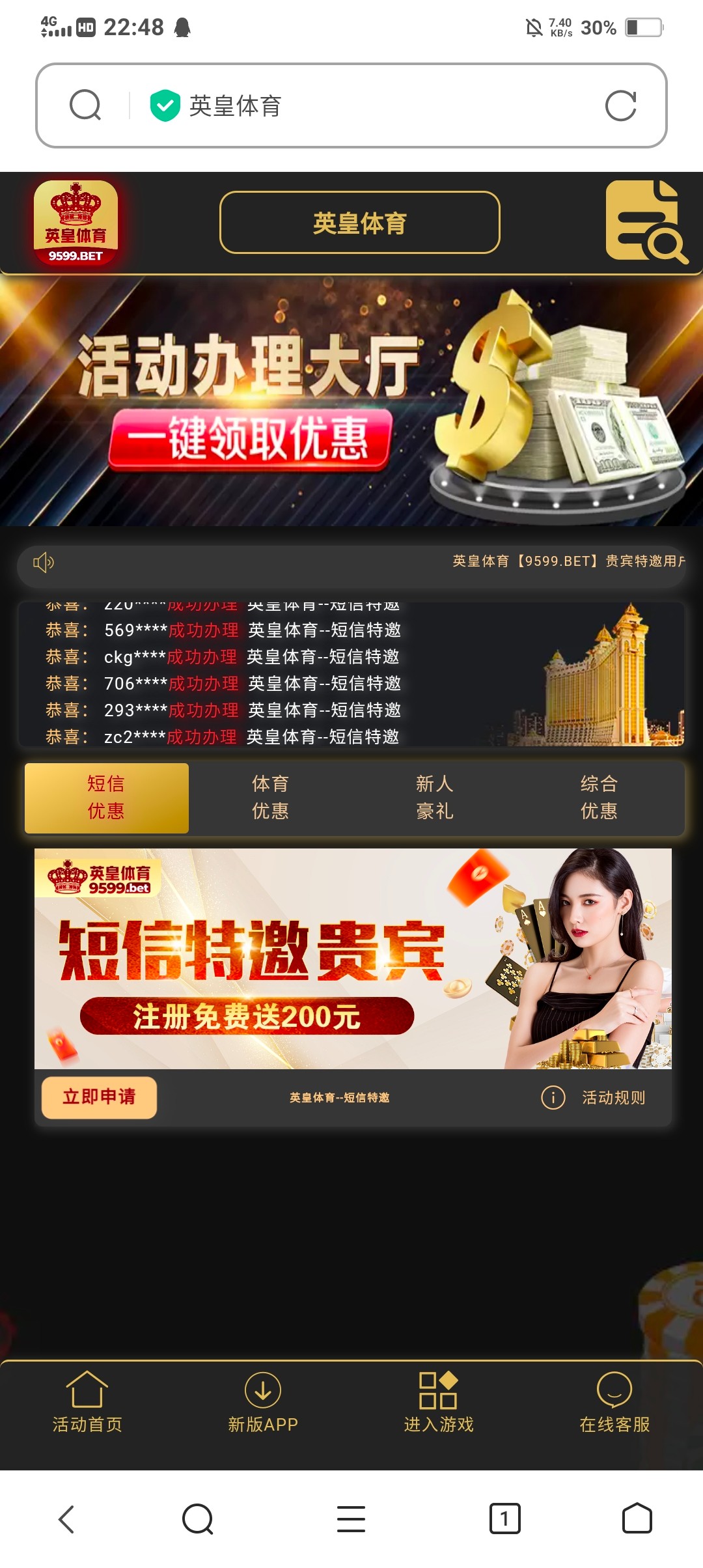 新用户手机号注册优惠大厅自助申请送10,申请到可连续申请20天共200。