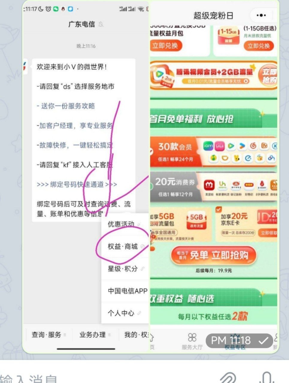 广东电信公众号,权益商城,12点准备好了,12点抢