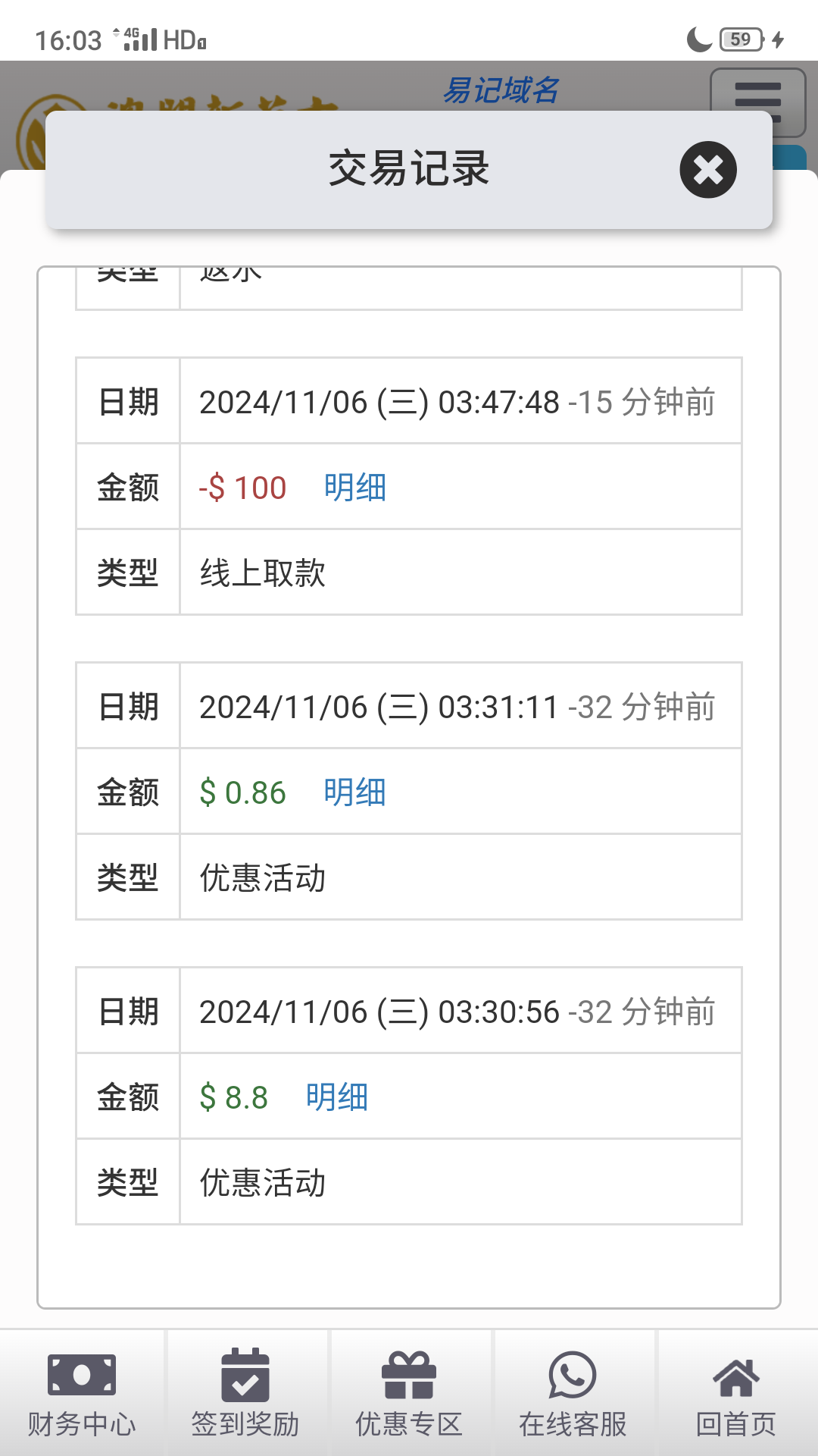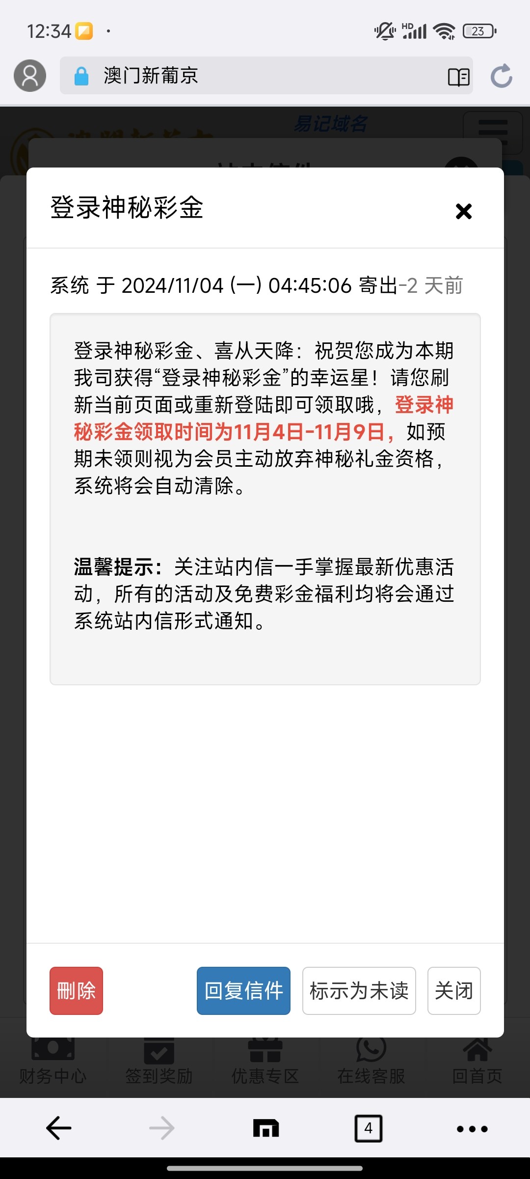 因为没有登录,我的是打电话通知我领的,我没有充过钱,这个台,出款自测,8558.com