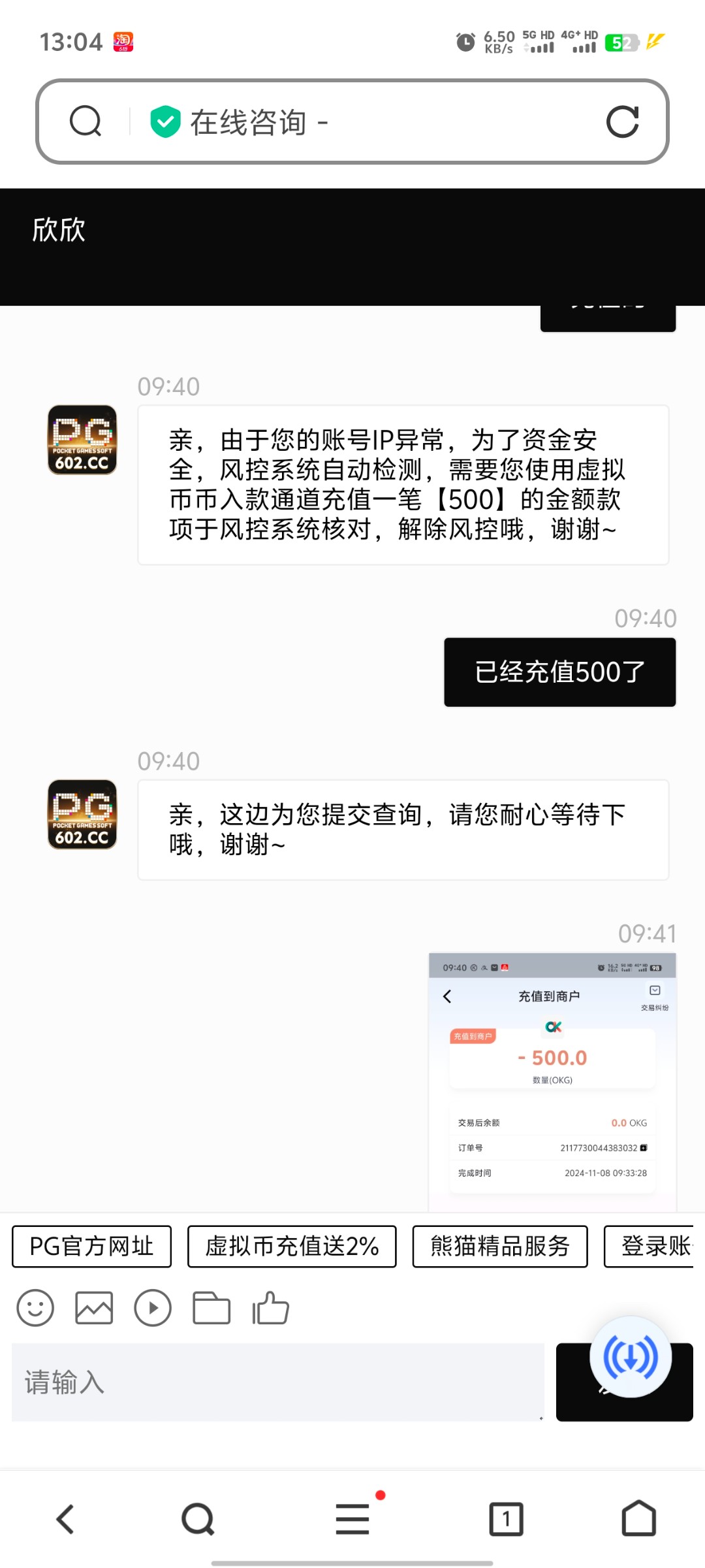 打到19000叫我充值500,充值了到账了