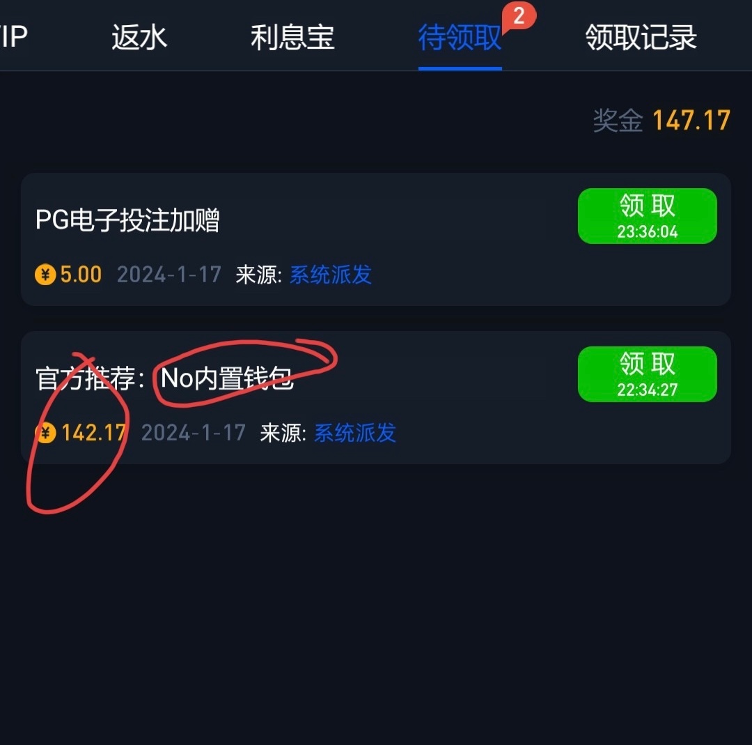 no钱包经常送。之前送过一百多,又送了一百多。一倍水就可以提现了!【01/17】