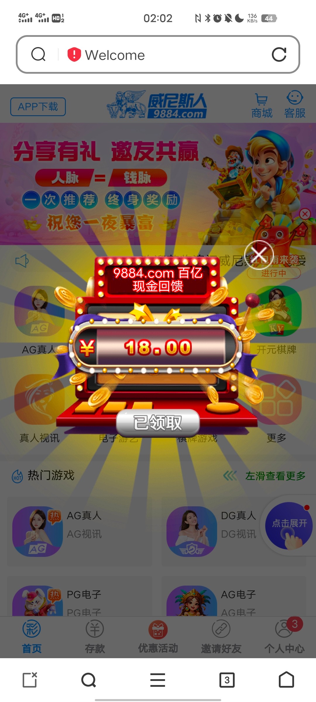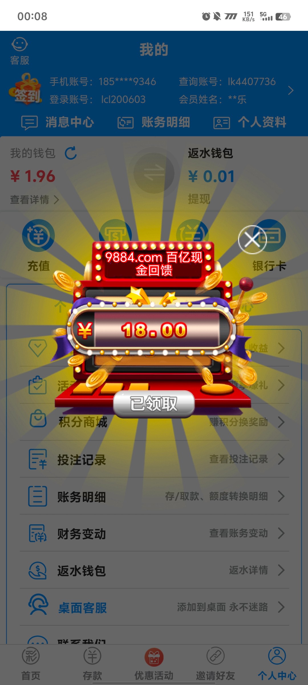 领到了 没充值有18