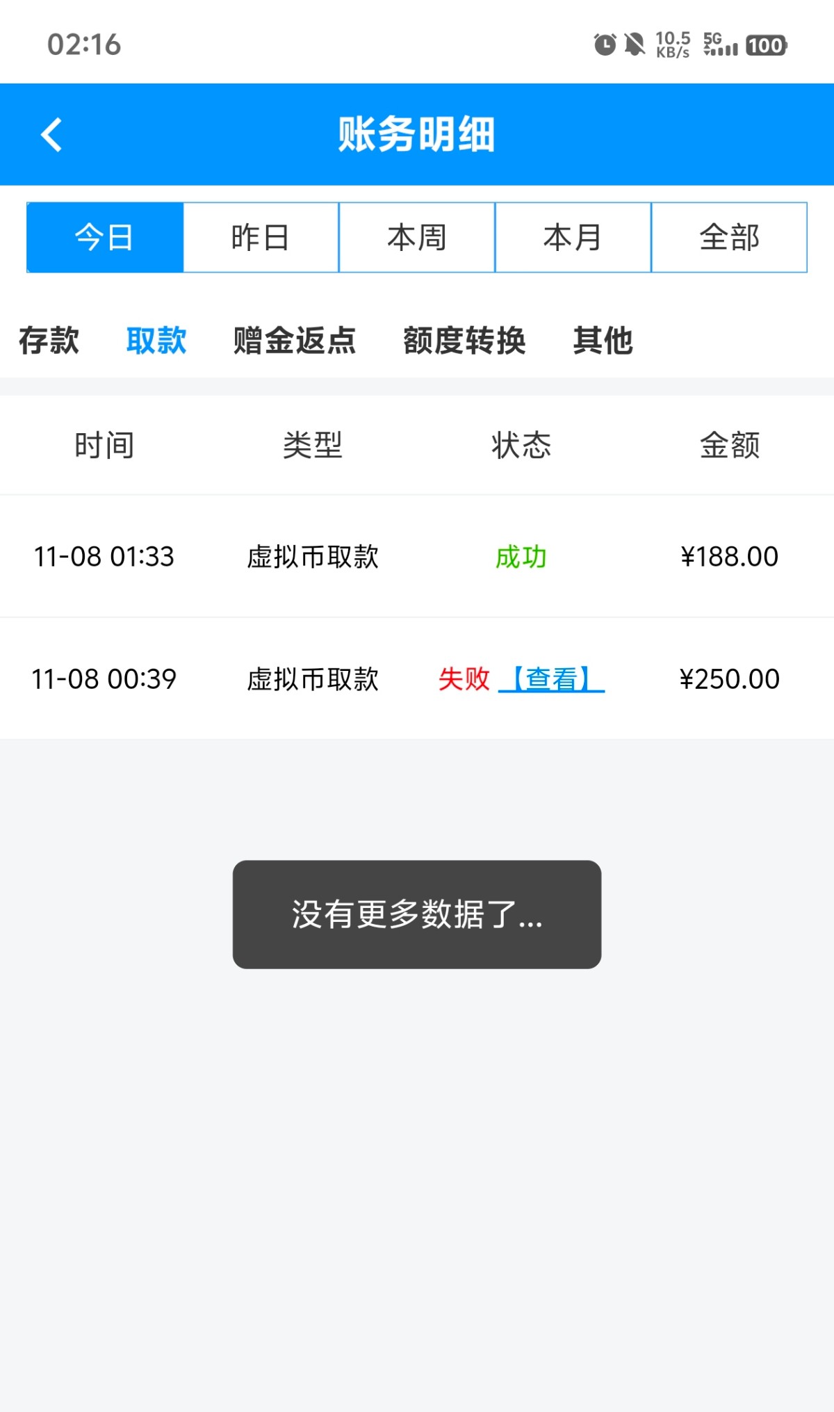 出款情况:自测(禁止充值)