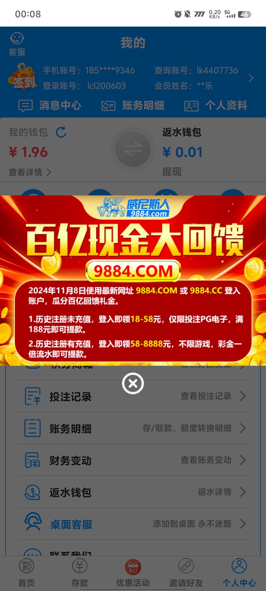 我的送了38出款188