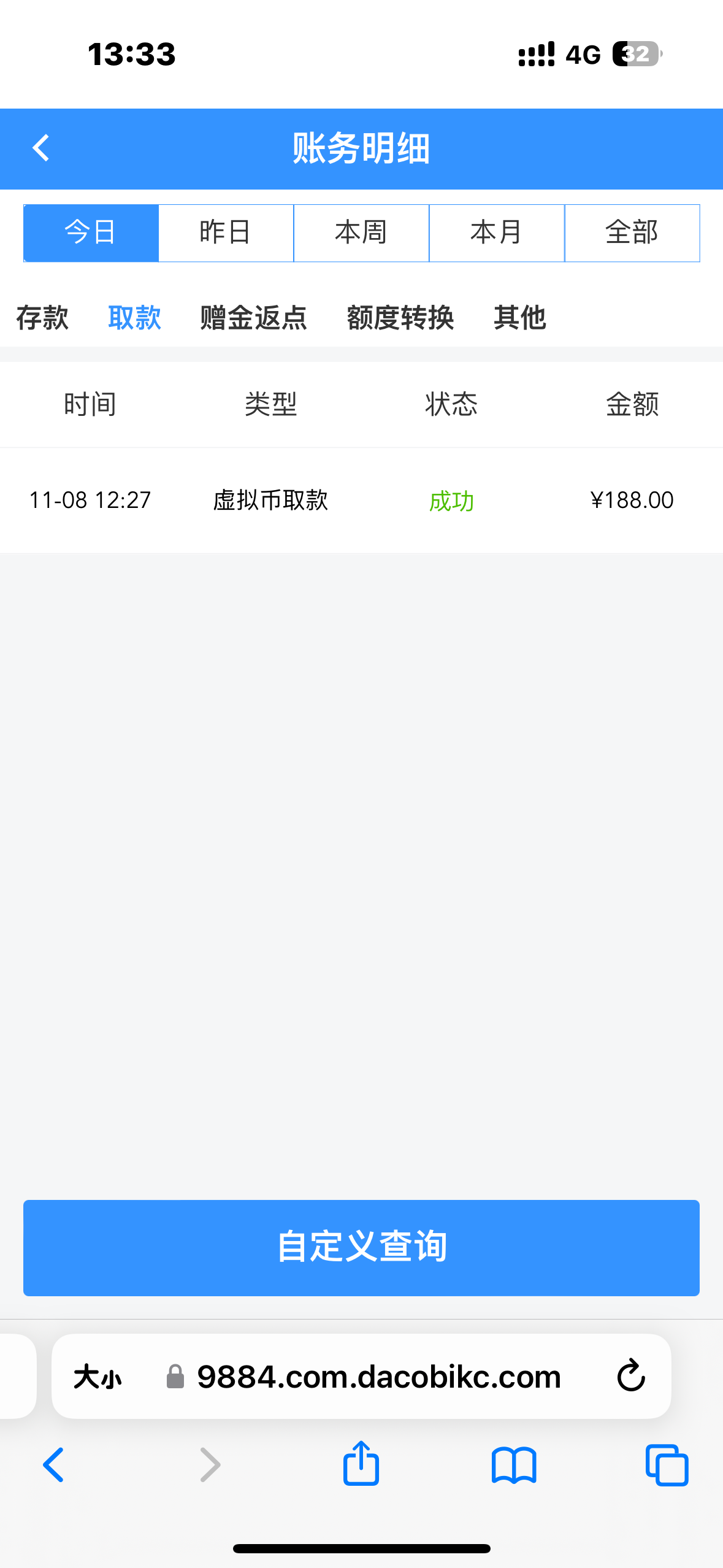 这台子还不错,昨天余额2块上192提出来了
