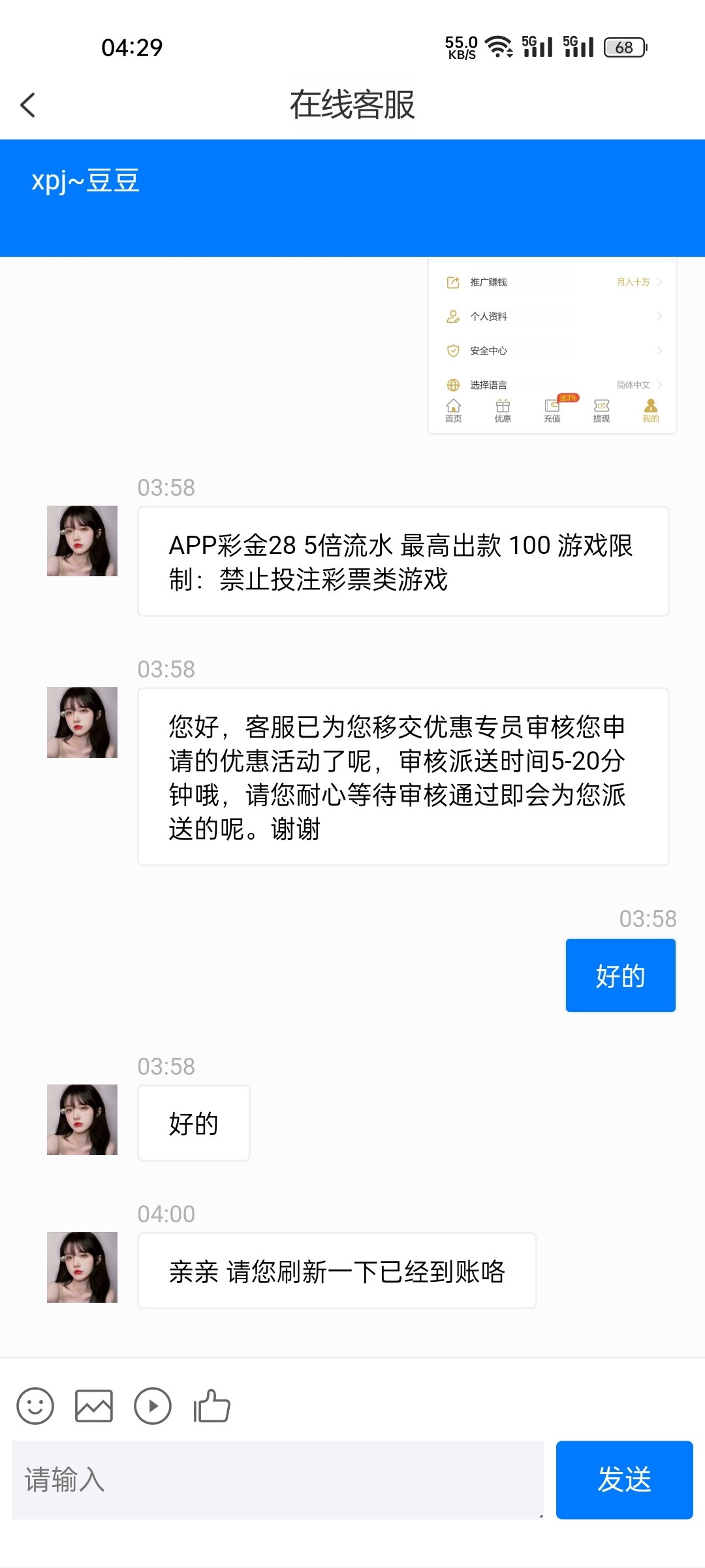 16:33App彩金申请完成首次充值 次日点击优惠 点击任务处领取app彩金28,首次充值加领更多优惠彩金的哦,祝您多多盈利,游戏愉快!!!