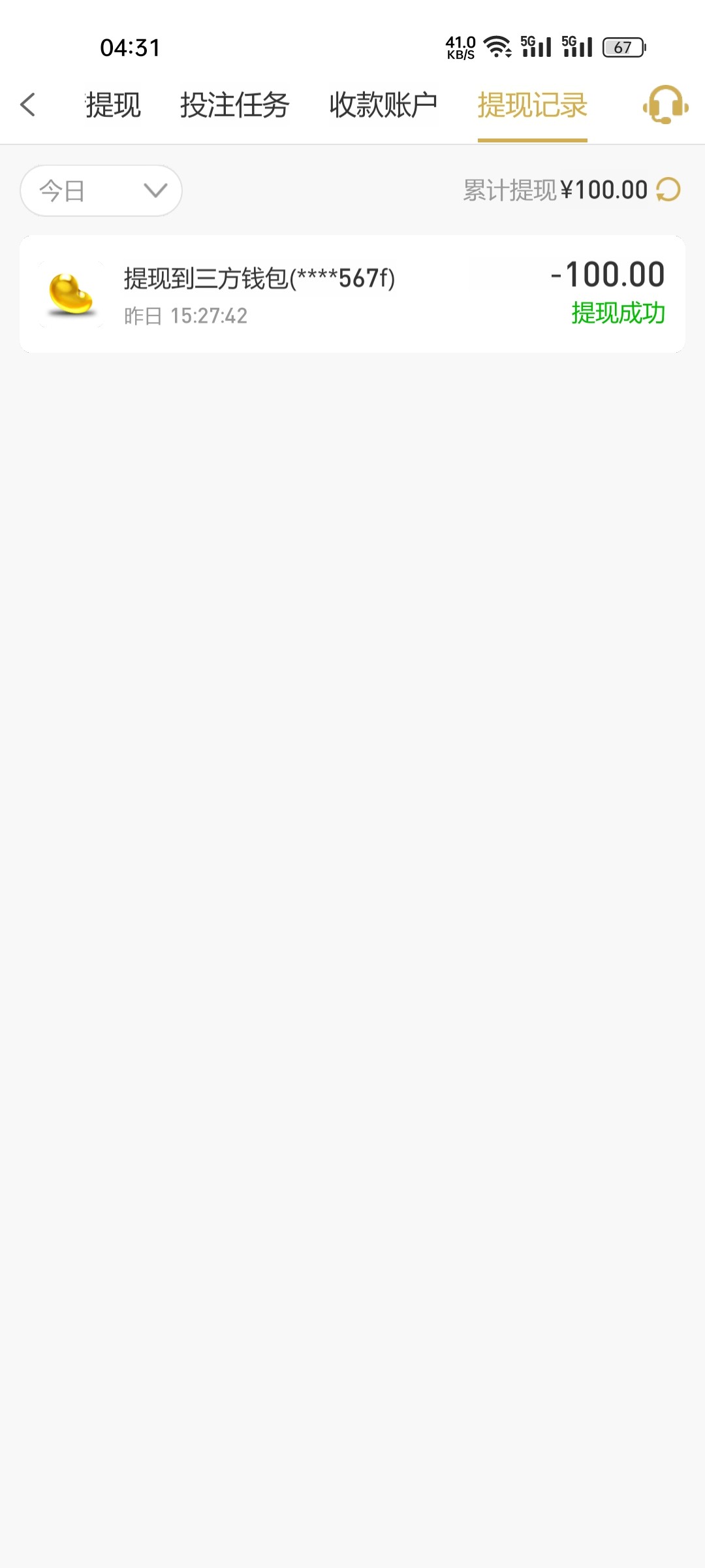 客服说只能出100 后面我又试了出款 没想到也到了 到账200