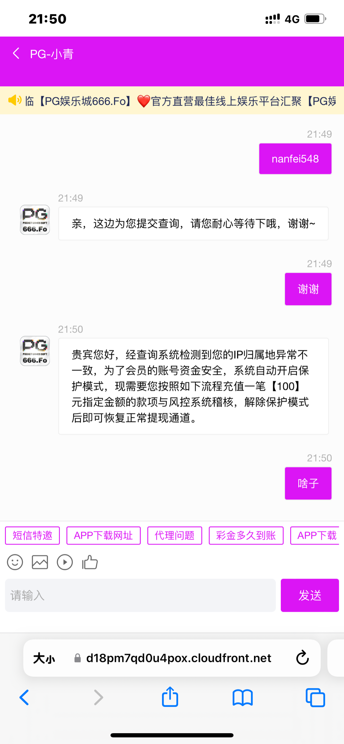 别去了 我昨天提100不让出,说需要验证本人操作需要充值100,我今天冲了100提250,还要让我充值200说需要验证账号,无线充值套娃,黑平台