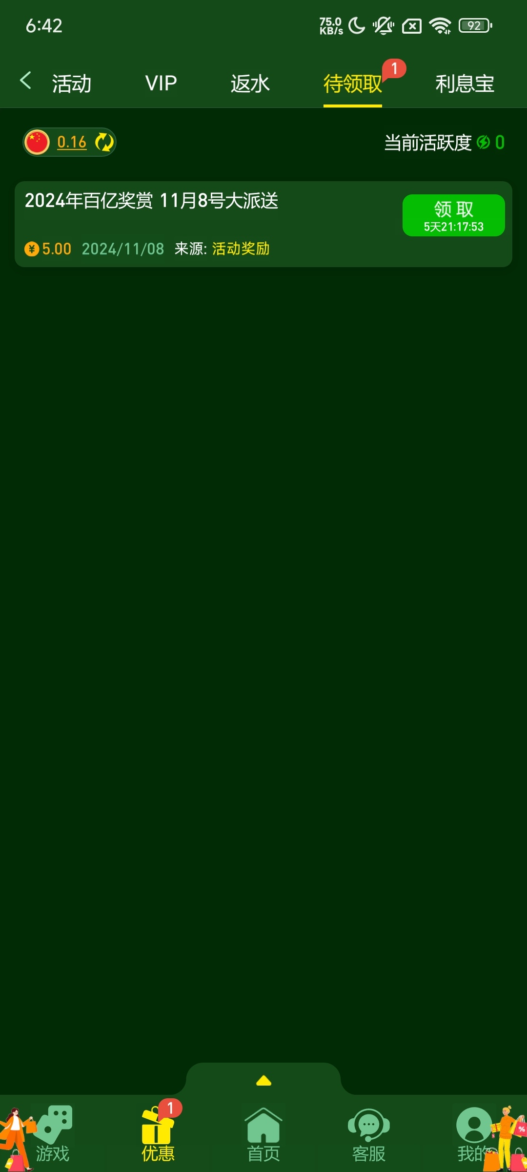 有号充值过的可以上线看看有没有