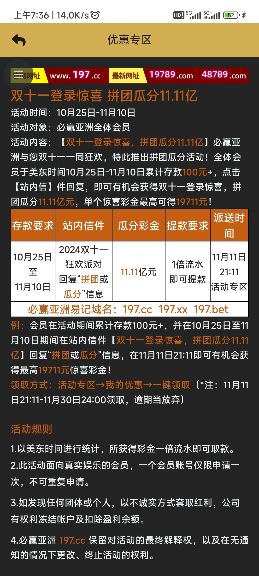 【盛大/必赢197】—✅—双11回馈