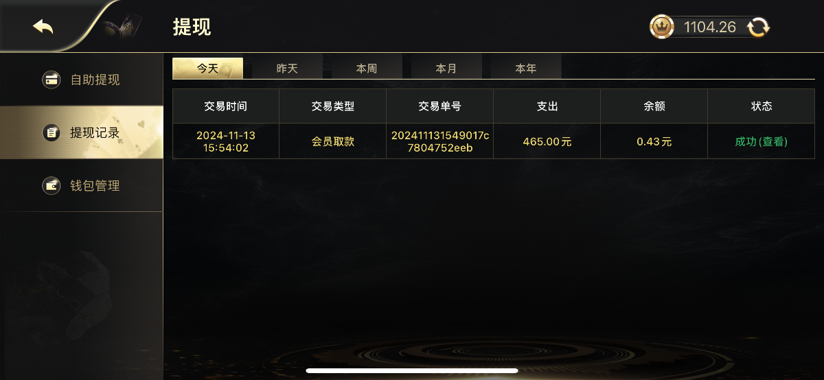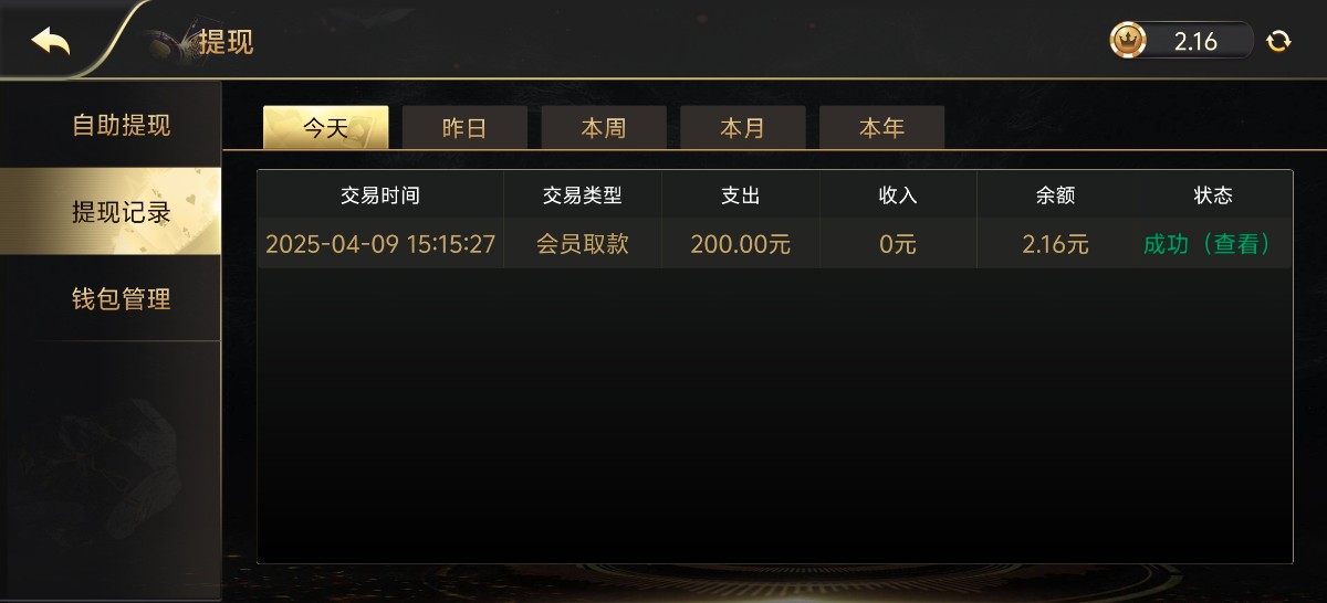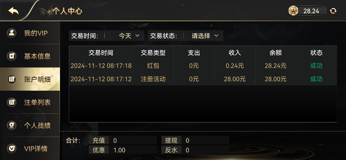 这平台可以的啊 第一次充了500 送了很多彩金 第一次怕黑输了点就提现了 发现到账是稳的 直接充回去梭哈