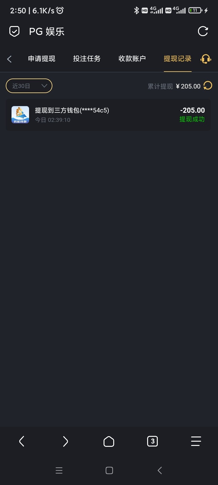 昨晚刚玩过。吃上了,前面9块输完的了最后3块反水麻将炸了200多倍提205狗屎运