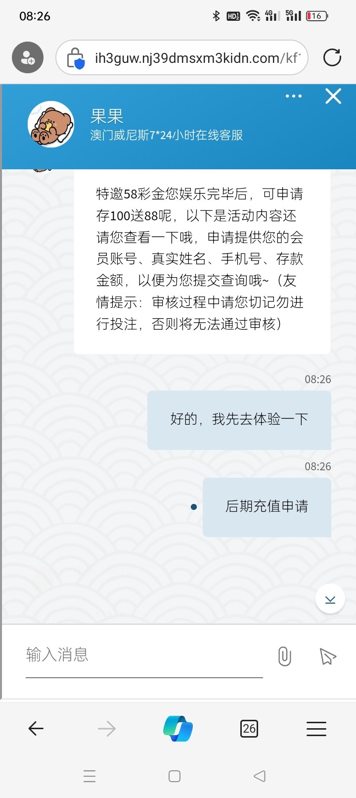 有收到这个短信的找客服领58,网址在短信图 彩金不限制游戏,一杯水取款,最低388。我没打出来,打出来的团个