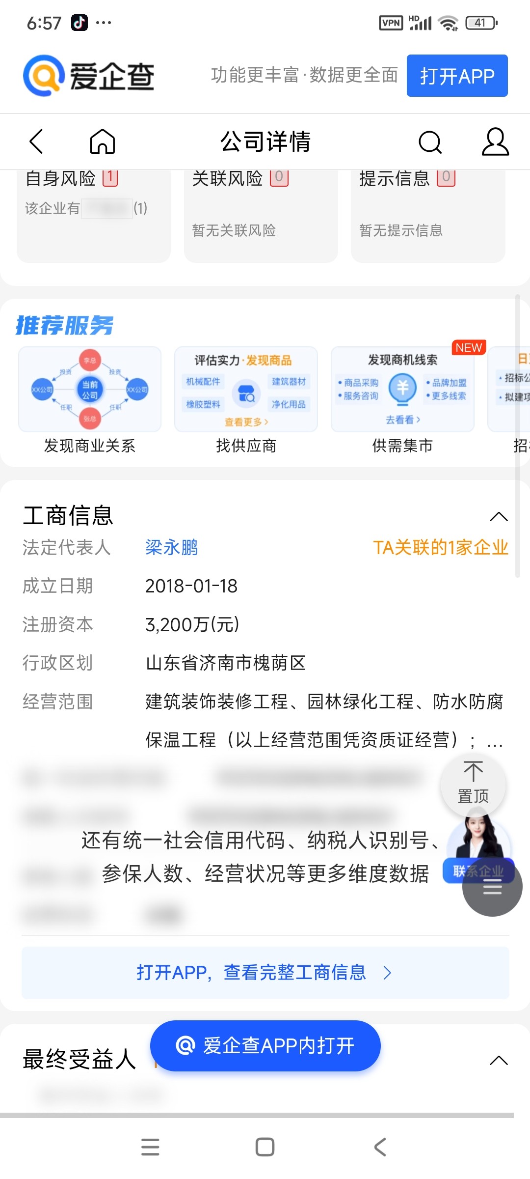 哥们查了下你做法人的那个企业,注册资金32000万。有严重违法。你完了