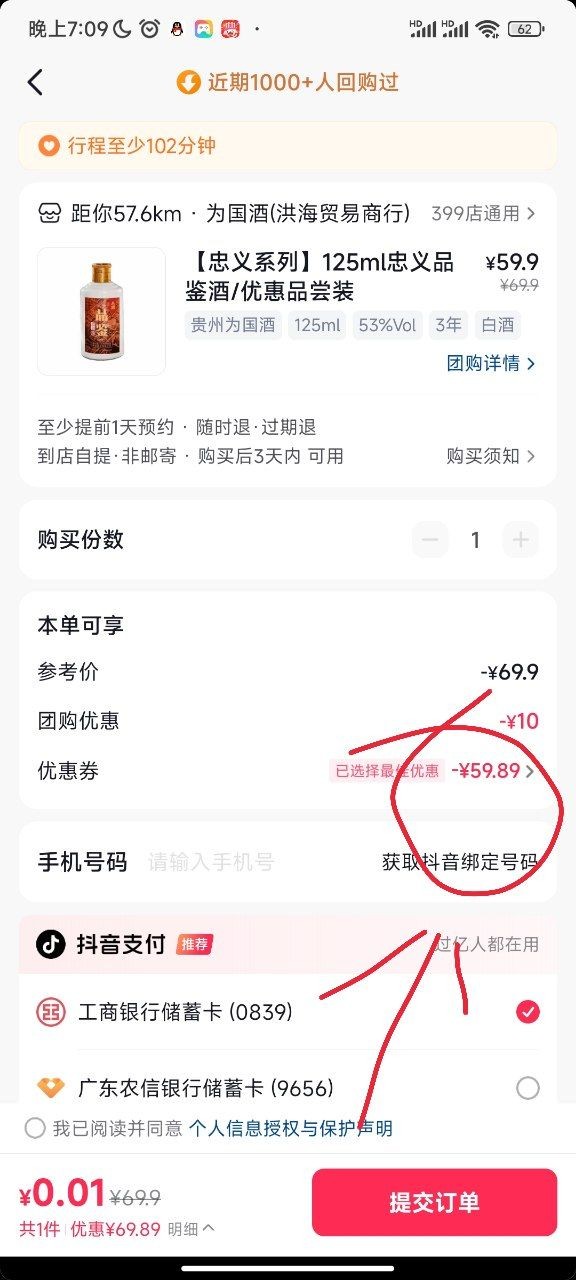 人人有冲,抖音搜索为国酱酒,进入到直播间按图片步骤关注就能领那个优惠券了,有的是0.01有的是一块,反正合格的酒,,自己不喝可以卖给别人,反馈下大哥们