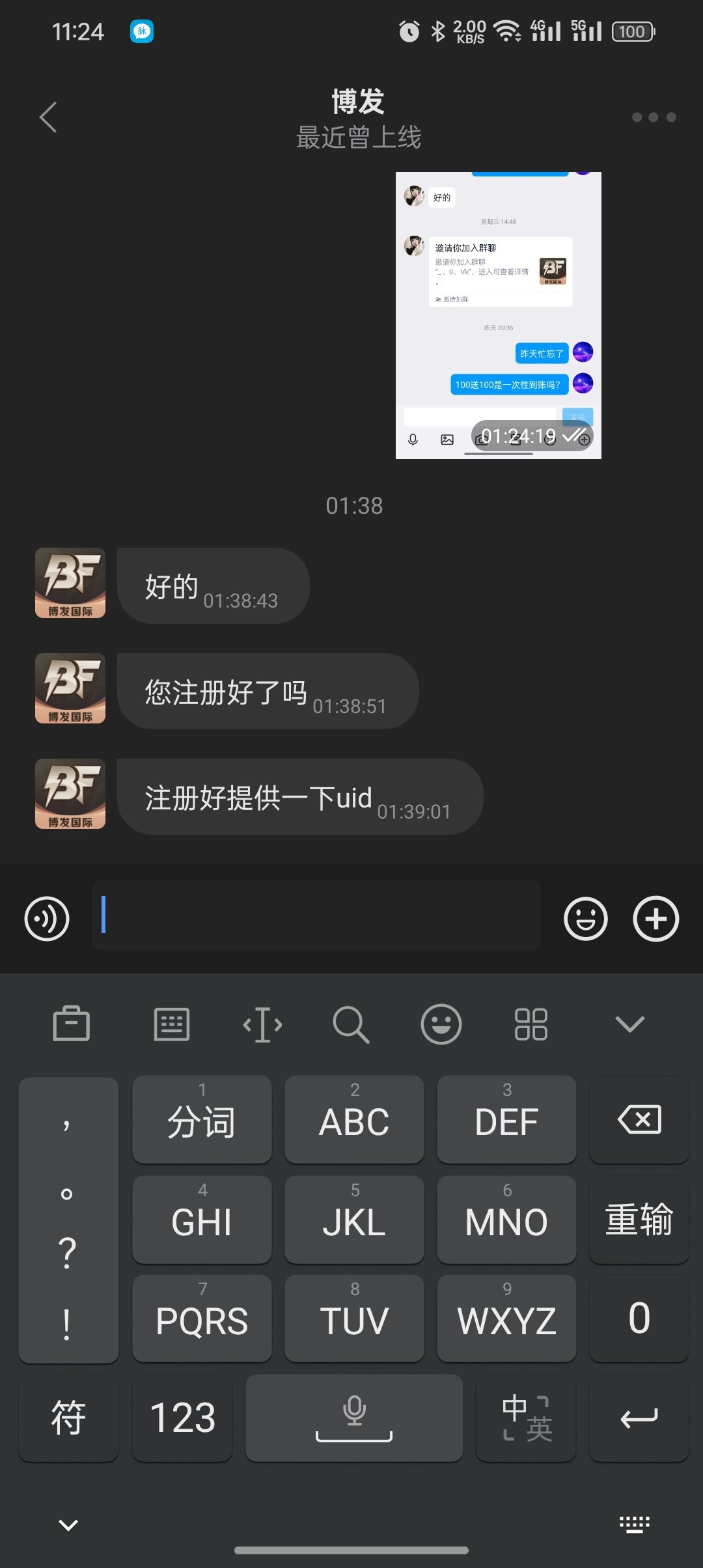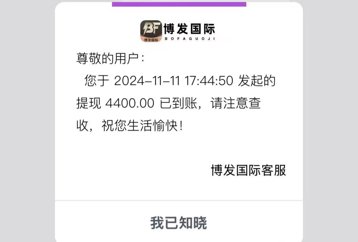 短信说300+300,看到和问鼎模板一样的,就直接玩了,期间300本金上到了800,没提现(黑不黑不知道),300输完之后,傻逼狗带就装死不送了,期间说三小时内送,老哥收到博发国际的短信记得避雷,狗带就是贱种。