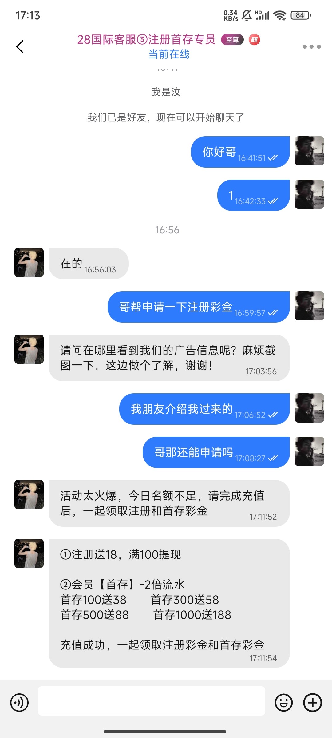 找旺旺客服,以前应该都撸过18,现在又可以撸了,注册好像可以领18,自己去看看吧,我没有充值过,旺旺ID7448585,禁止充值纯白嫖