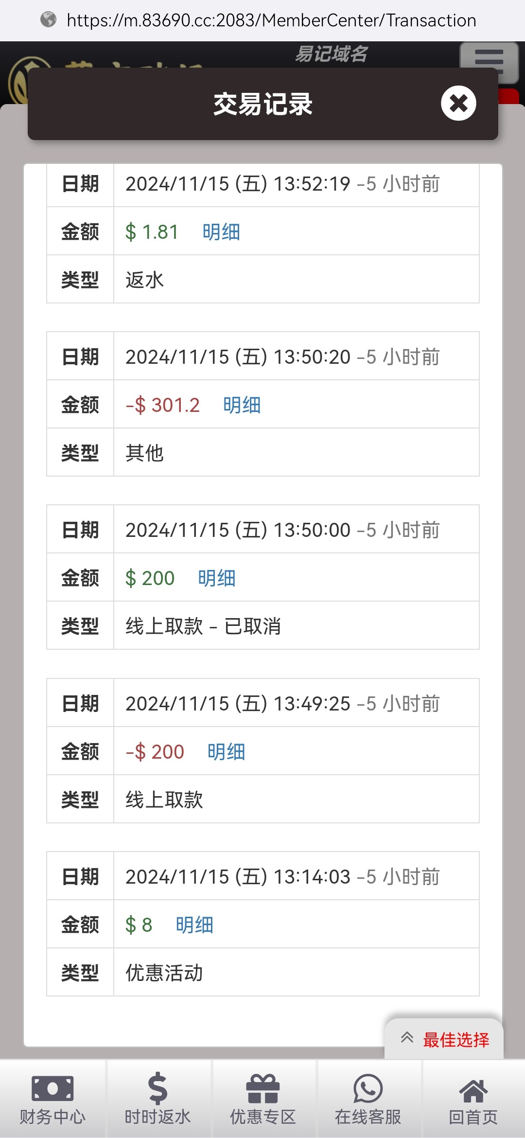 出款情况:自测(禁止充值)