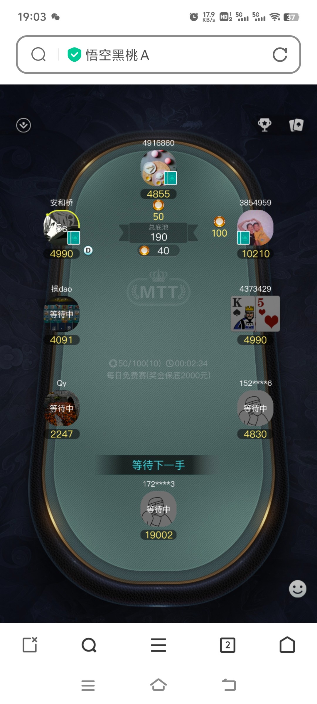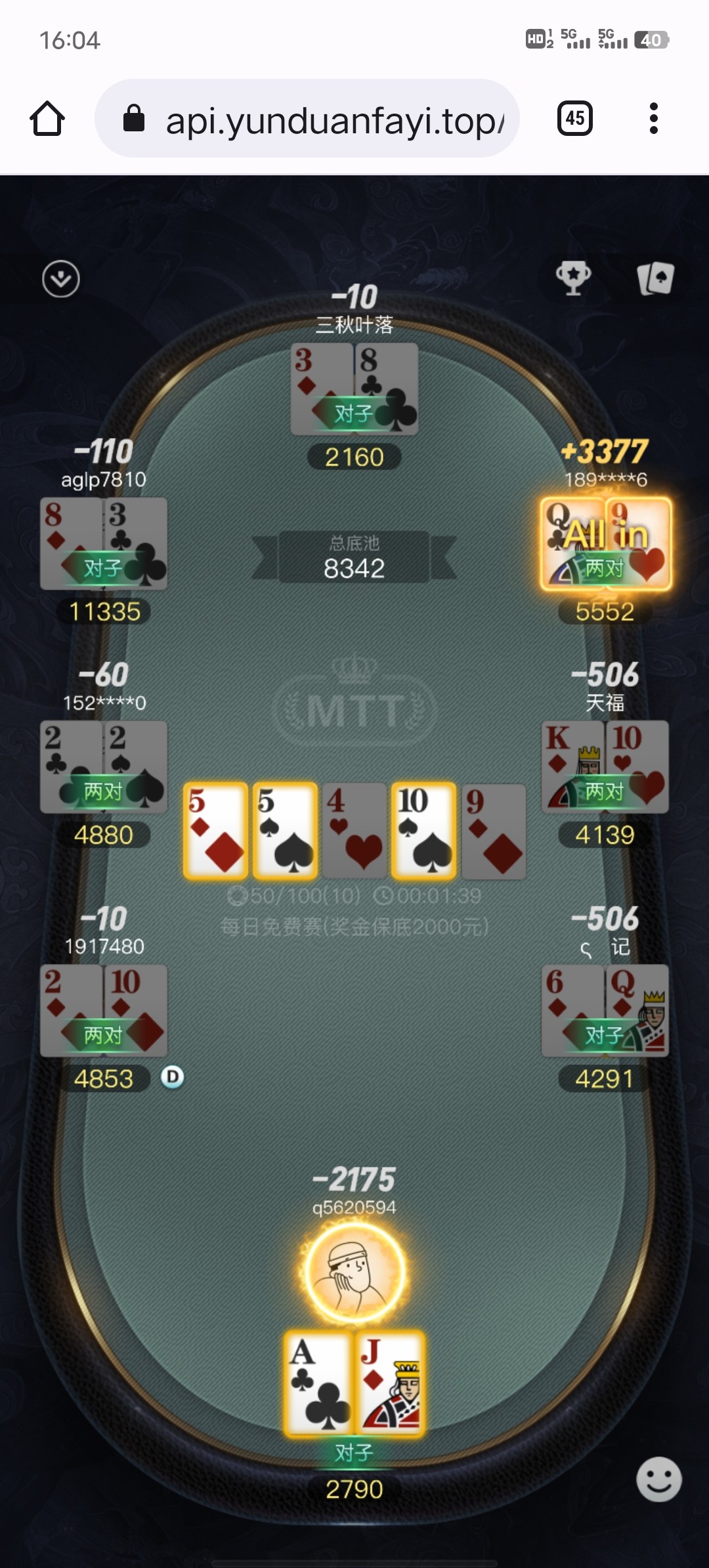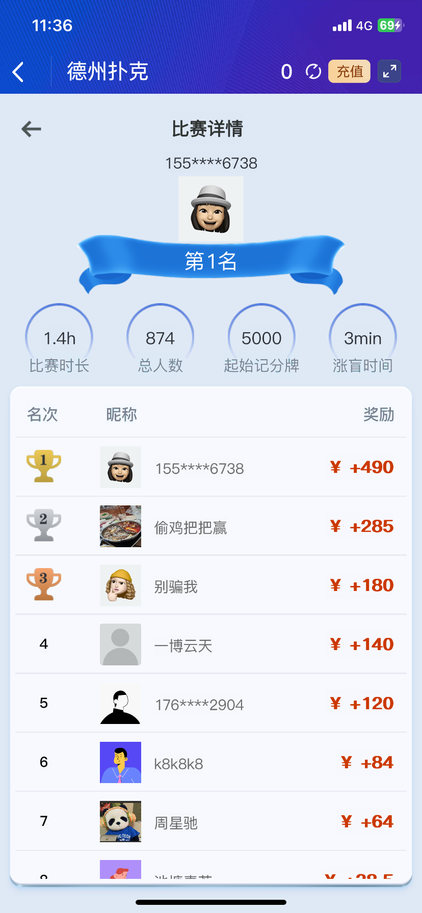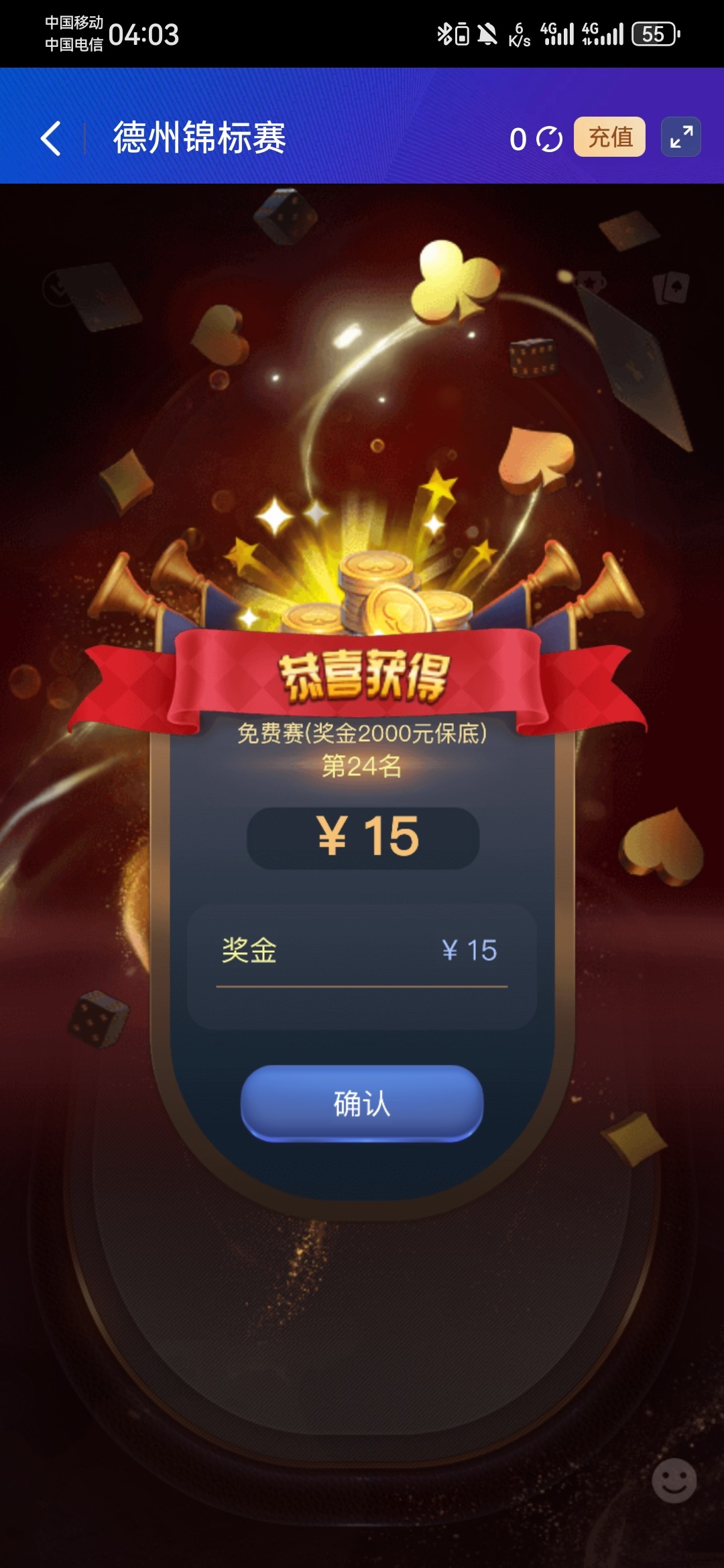 德州免费比赛保底2000元奖金 前50名都有奖励 我玩了一下 奖励是结束牌局之后 秒发放这是链接852185.cc 报名参加