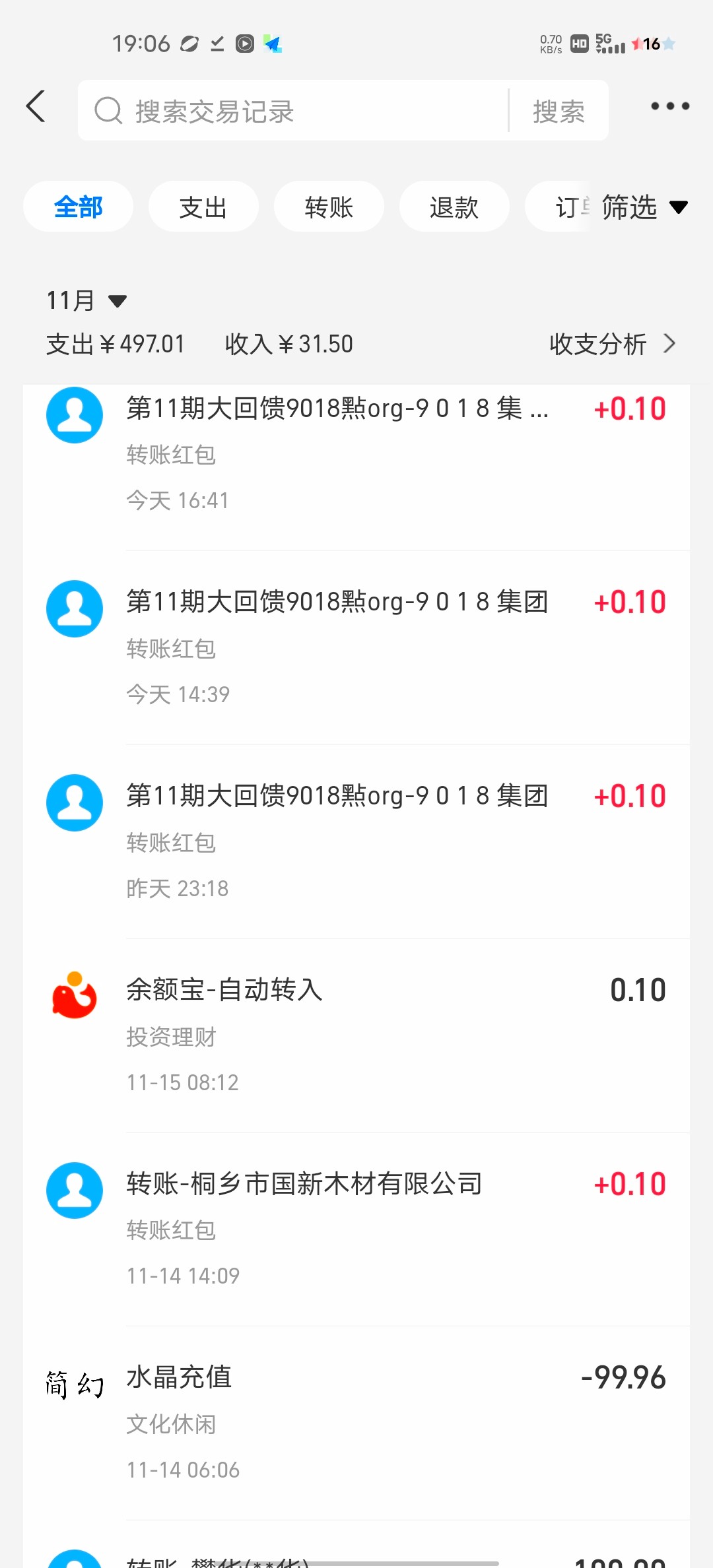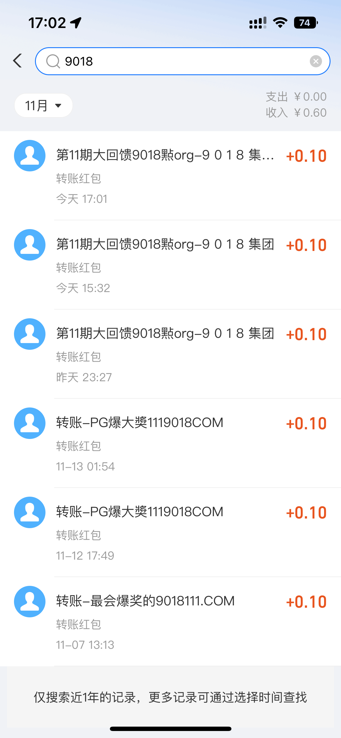1毛都给我转了一块多了