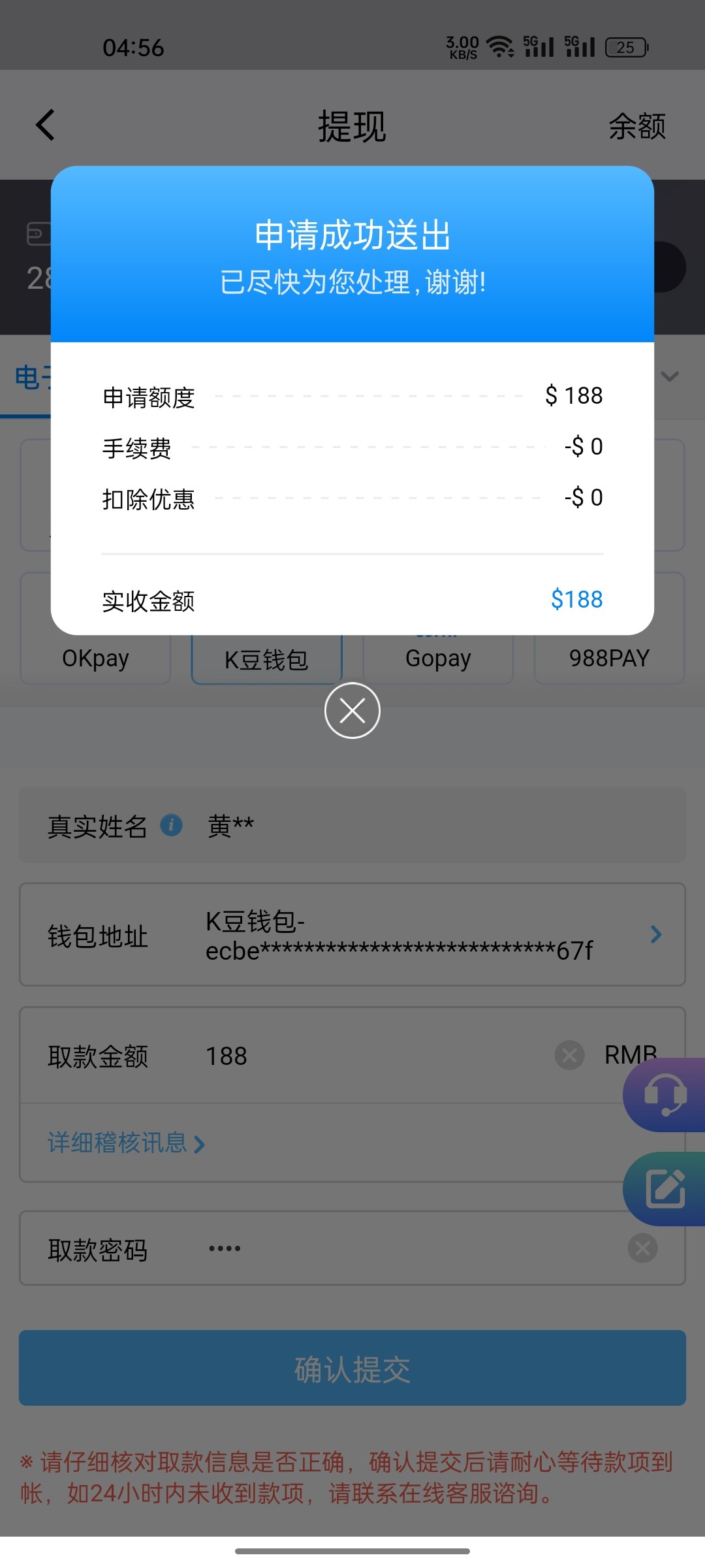 问了客服,首次出款提供地址和钱包截图,出了110