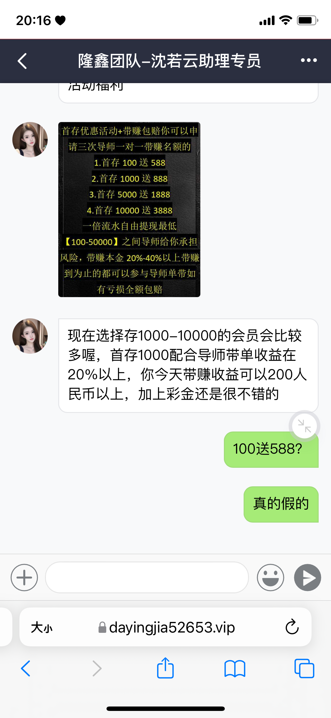 兄弟我来跟你解释,我经常收到100送588,然后呢打3倍水,1500提现,否定的,会叫你升级,怎么升级,升级就是充值,充值同等金额1500以前你觉得会给你,不会给你跟那个平台澳彩一样的,一句话叫先送彩金先体验一下,我过来首存款,你说