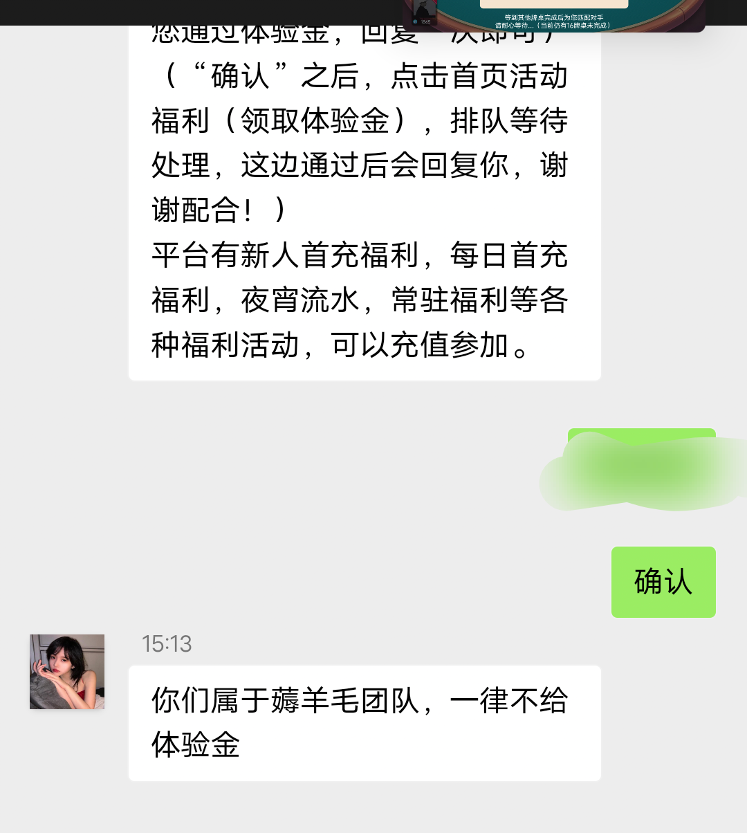 微信扫码登录自动提交体验金38打到388下28 没有流水其他
