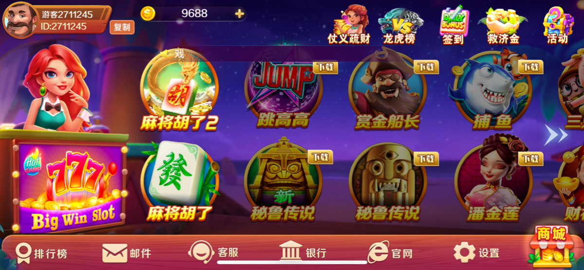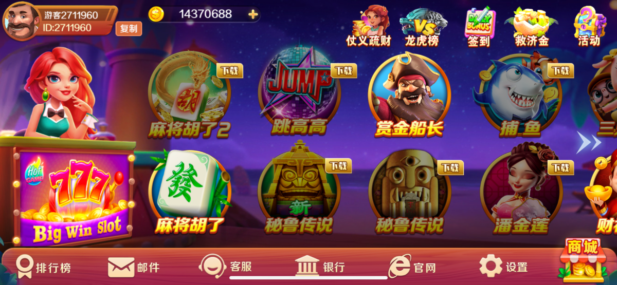注册就送8888加签到800 我打了3个号没打出来 最高打到50万 应该是100万金币等于100块,如果打出来了,试试去排行榜兑换 http://juwa7.com/
