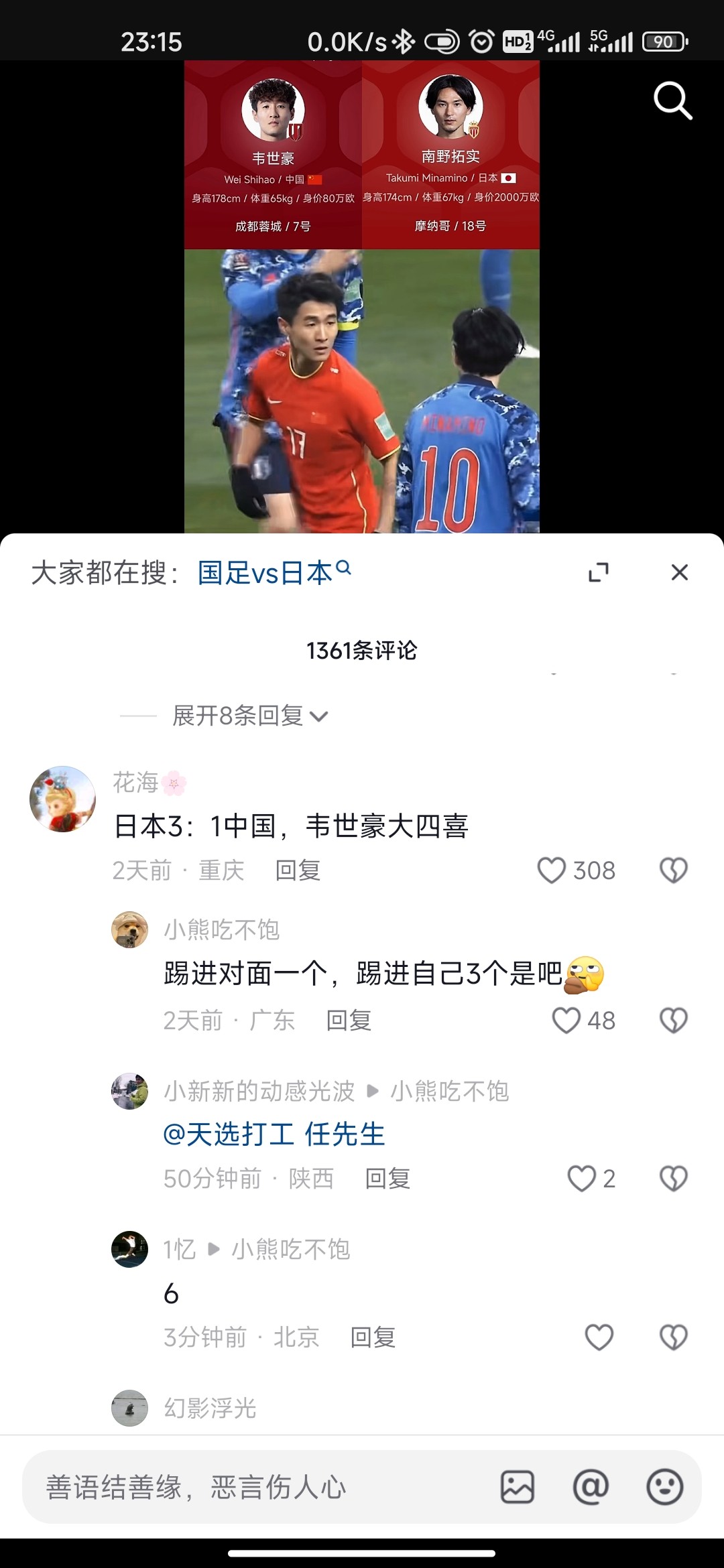 虽然没钱下注,大家讨论下现在的国足晚上会不会被小日子打爆,虽然不甘心,爱国的心,我买两块钱国足得了,证明我还爱国,大家咋看今晚的这一场