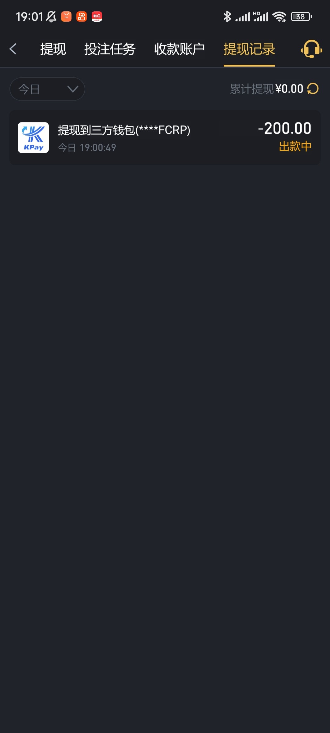 提188到账,没充值