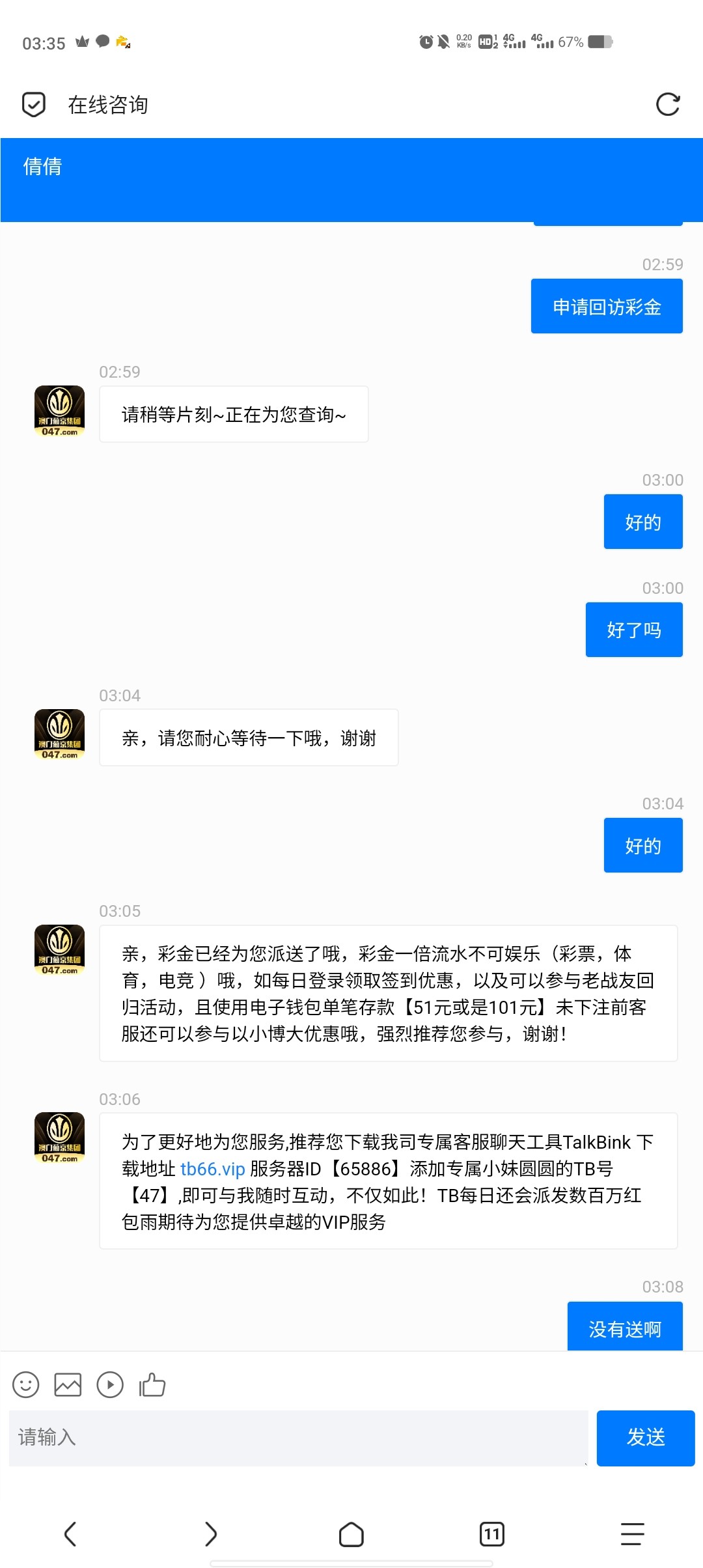 挂壁了所有台都申请电话回访 碰到了38出了六百多 网址047.com