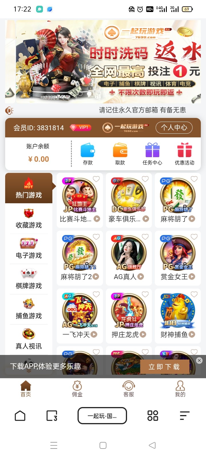 注册一起看之后在一起看游戏中心随便点个游戏跳转一起玩送18彩