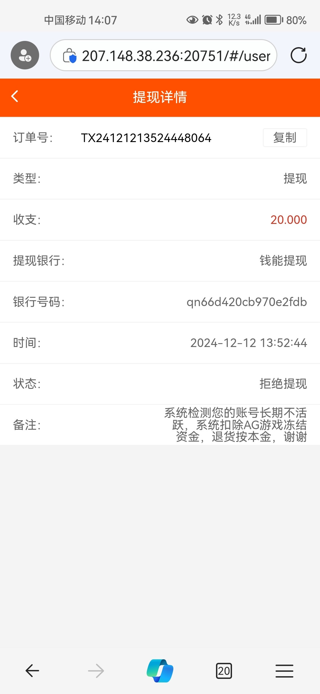 出款情况:自测(禁止充值