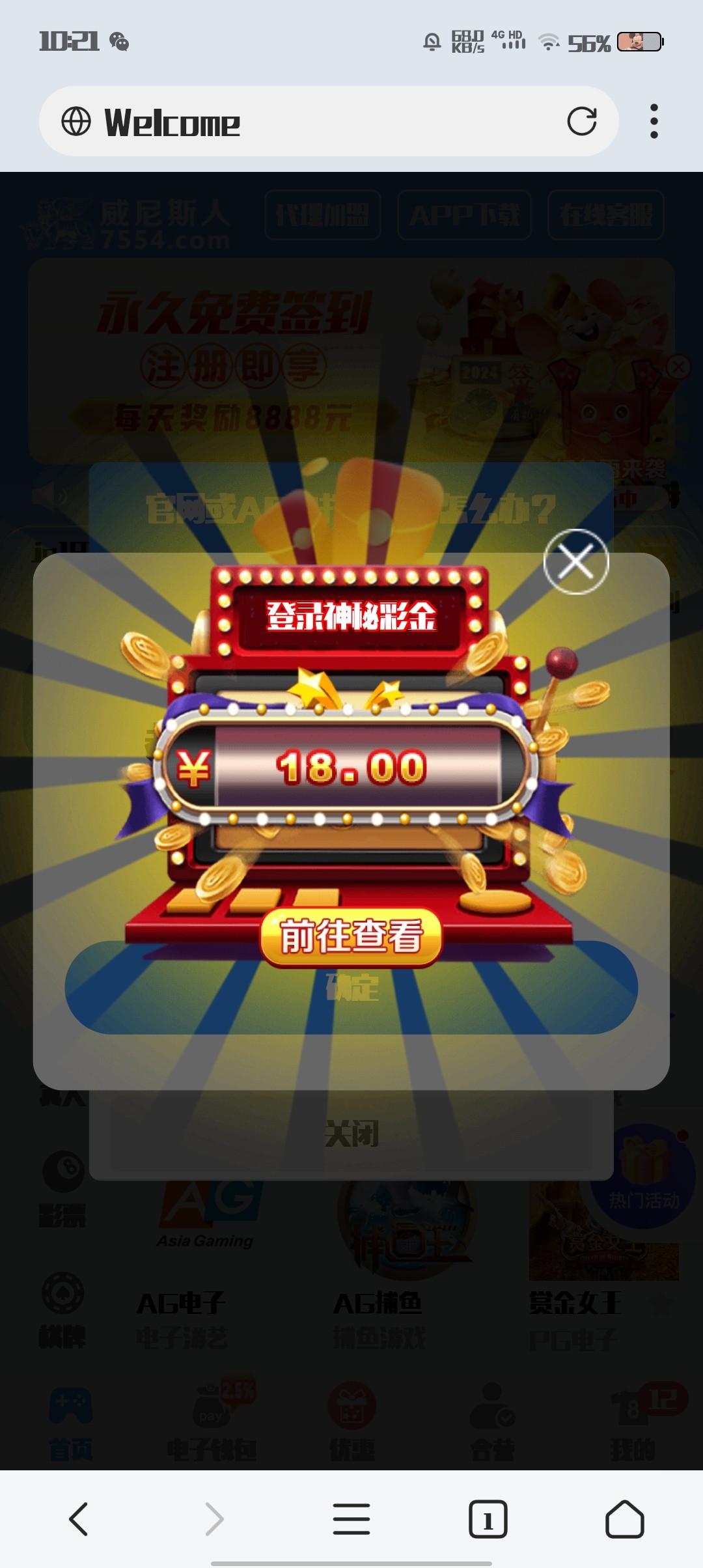真有。注册过没充值领了18。没打出来可惜