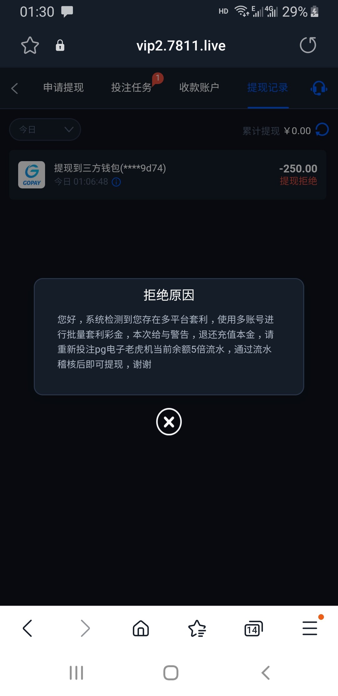 就一个号,100提250黑了,很六,别充值!别充值,别充值!!!