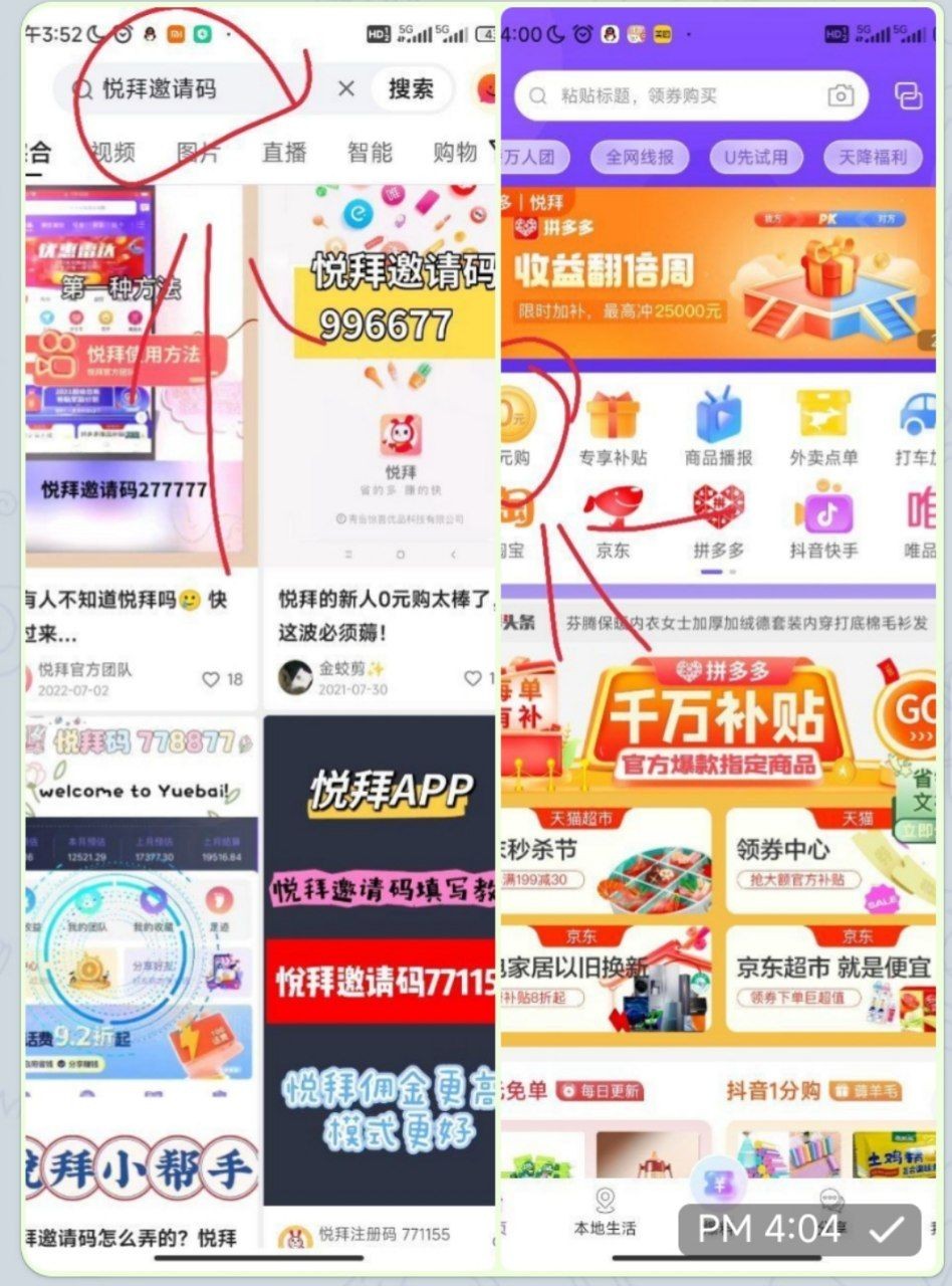 应用商店搜索悦拜,要邀请码才能注册的官方邀请码6个8如果,不行直接去快手抖音搜索可以带邀请码,多号多撸