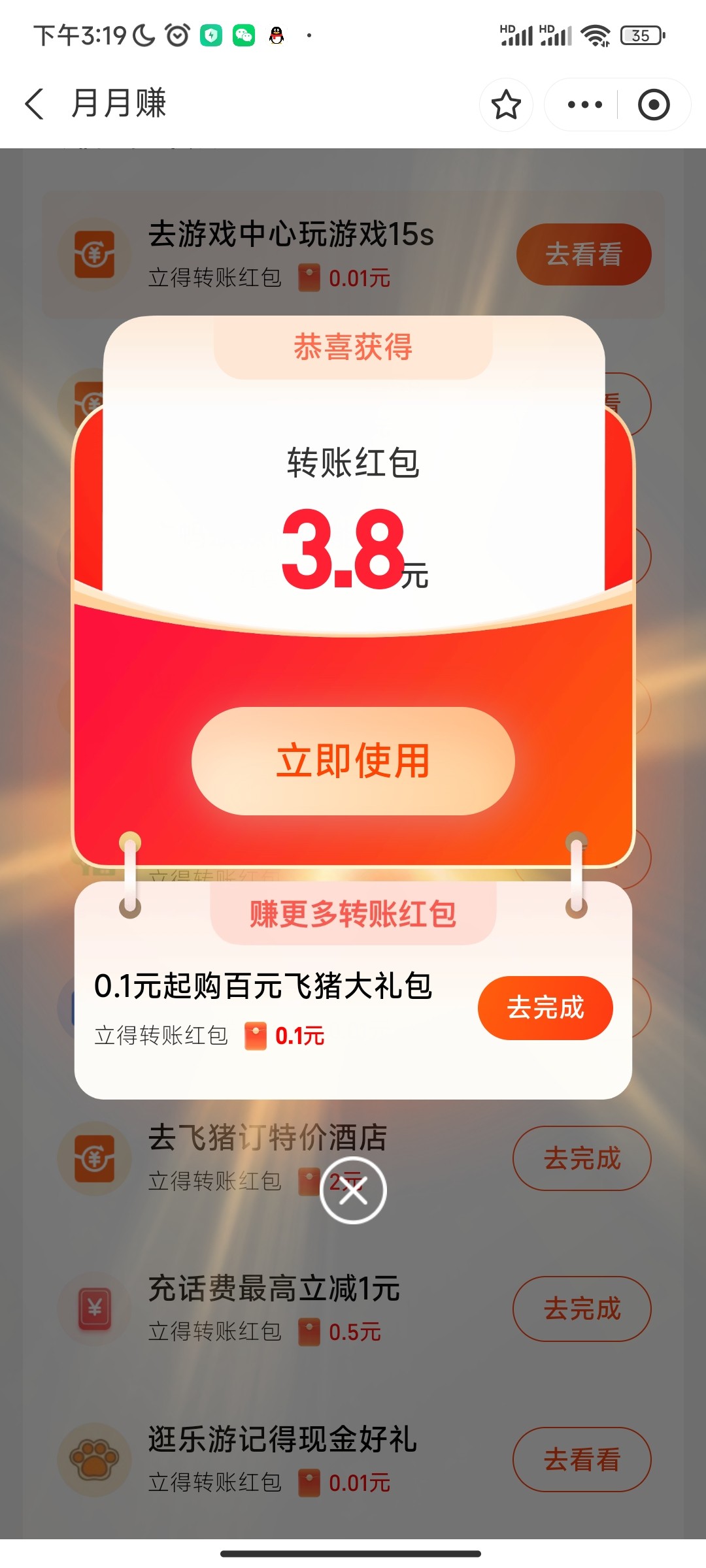 那个3.8转账红包,直接大号转小号就好了