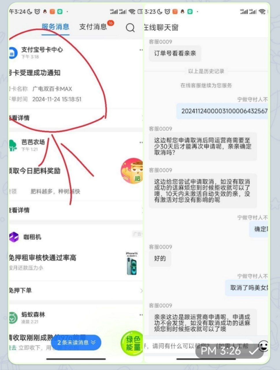 支付宝搜“月月赚”下拉找到爆款流量卡 去办理这个广电,随便填个地址,然后找那个客服帮你取消,一般买就取消能取消的,如果没成功到货拒收就好了,不用管他,这个要到货了才能激活的,不用担心放心搞拒收就好了,秒找找客服都应该能取消掉的