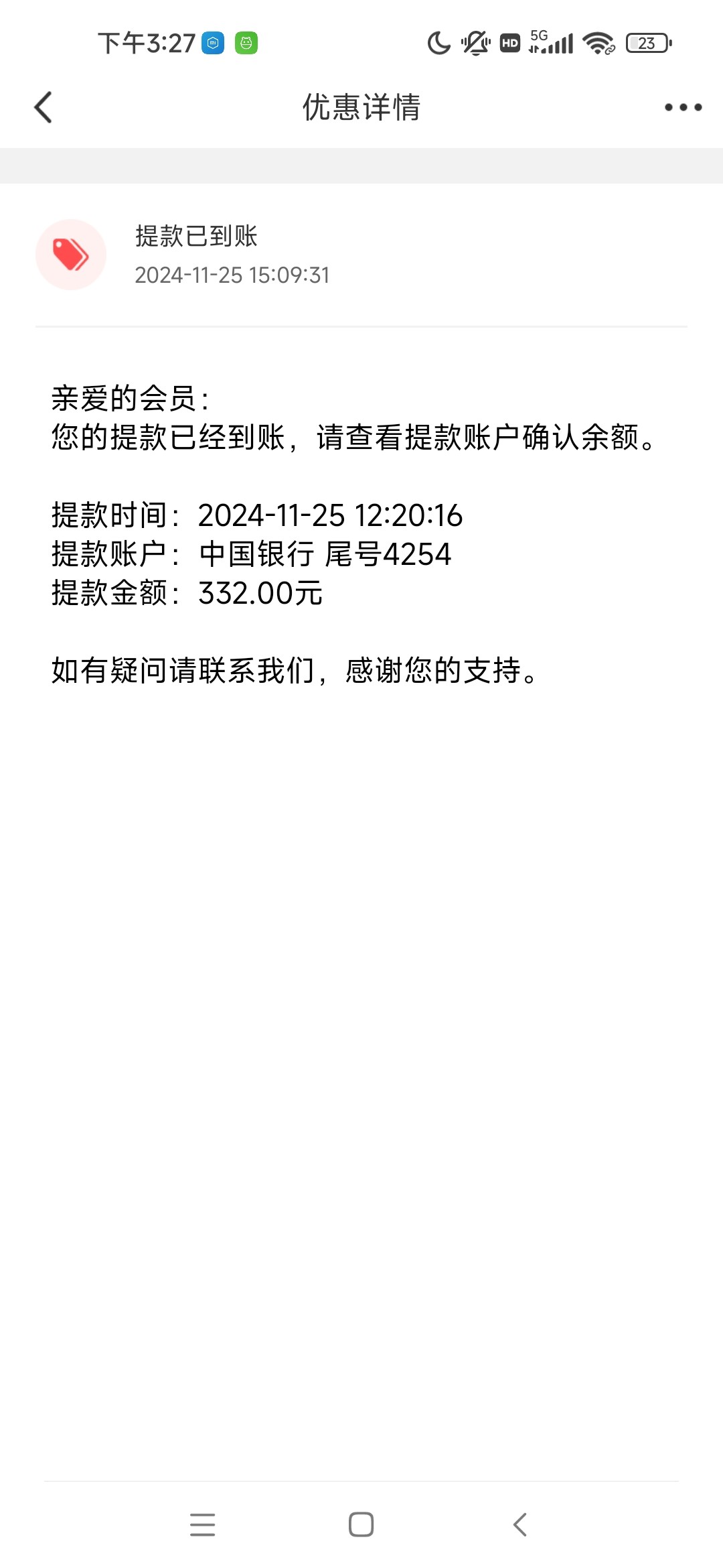 提现两个多小时到账审核好久中途怕不给出充了10去拉电子,后面出了300