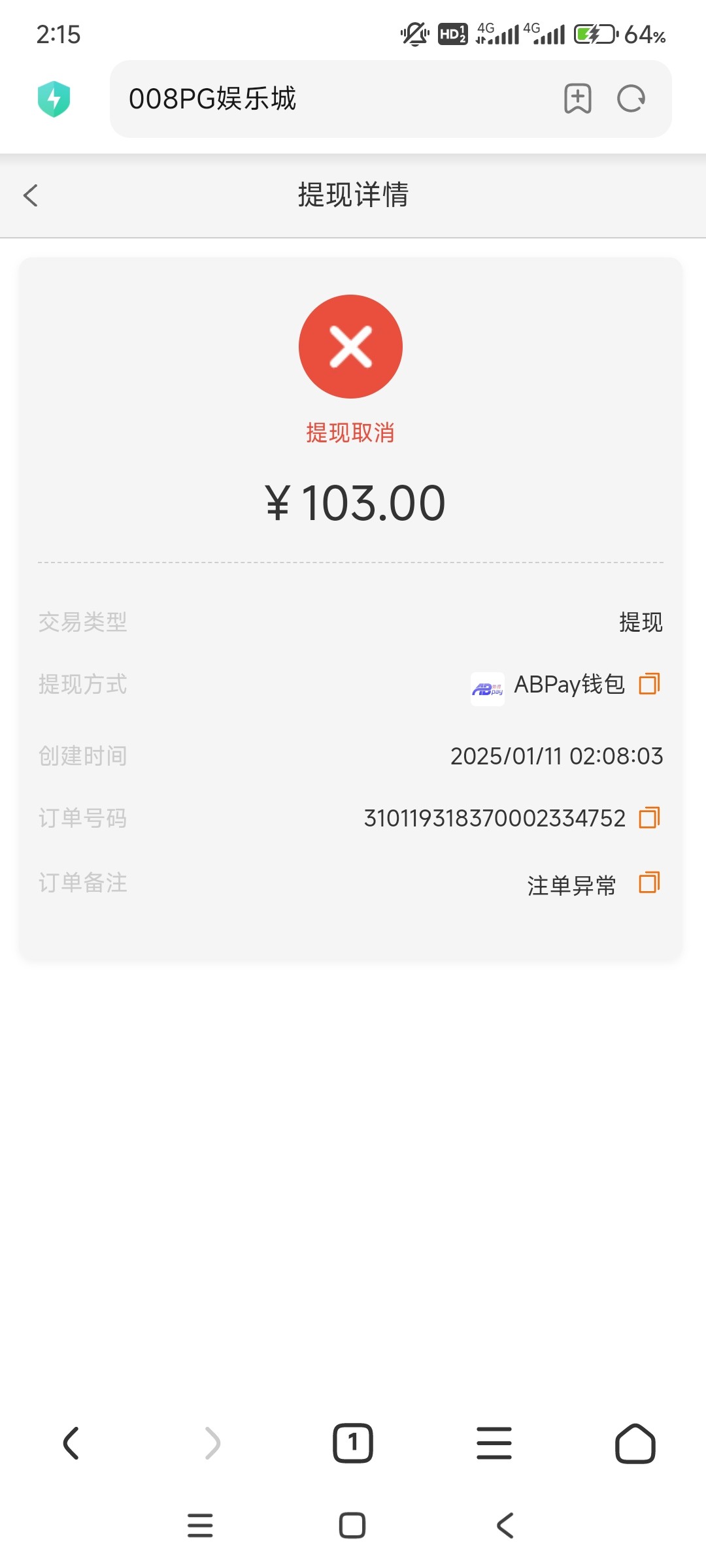 提款显示注单异常,账号被冻结 大家注意点 网址是008.vip pg娱乐城
