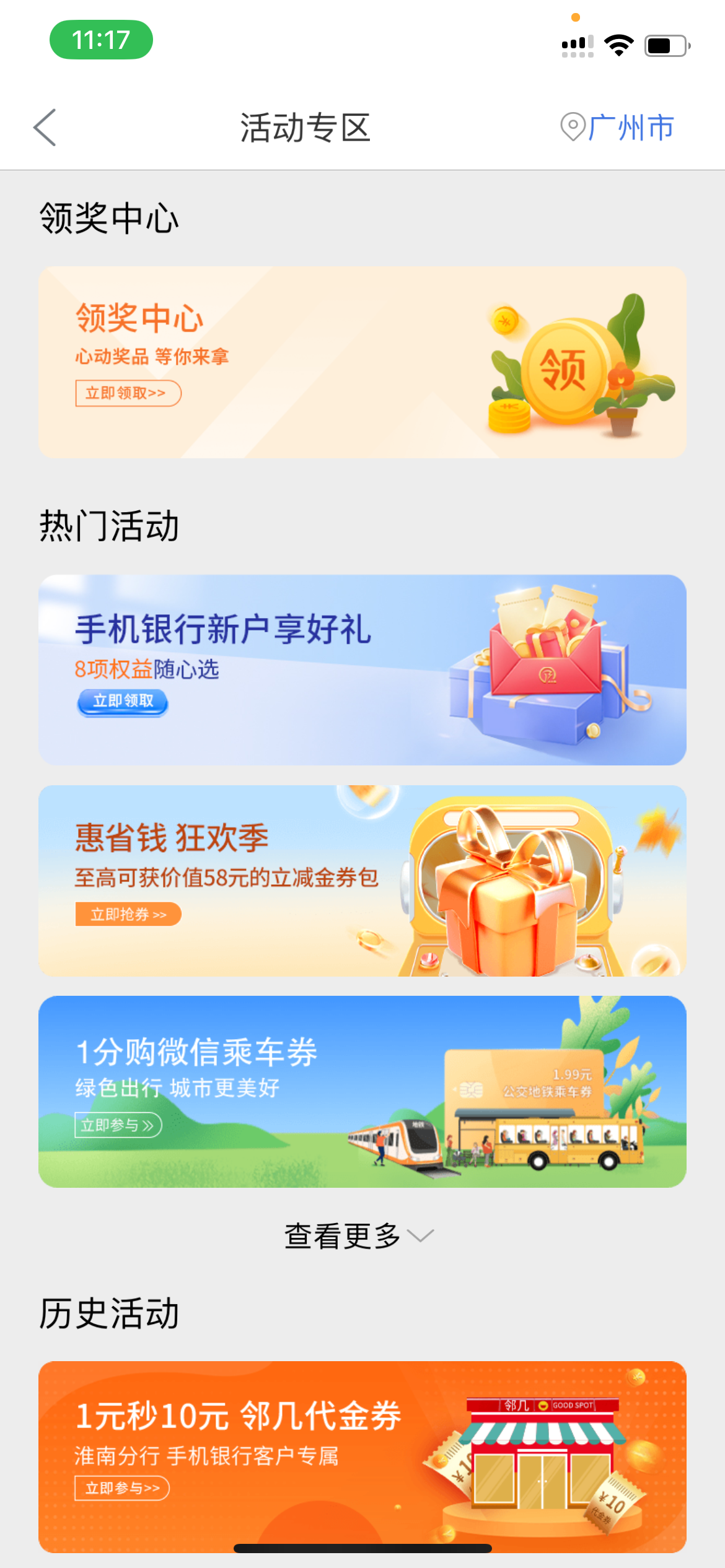 微商银行老用户,手机银行上开过2-3类网商卡的,首页-热门活动-领奖中心,有一张10元一张5元立减金